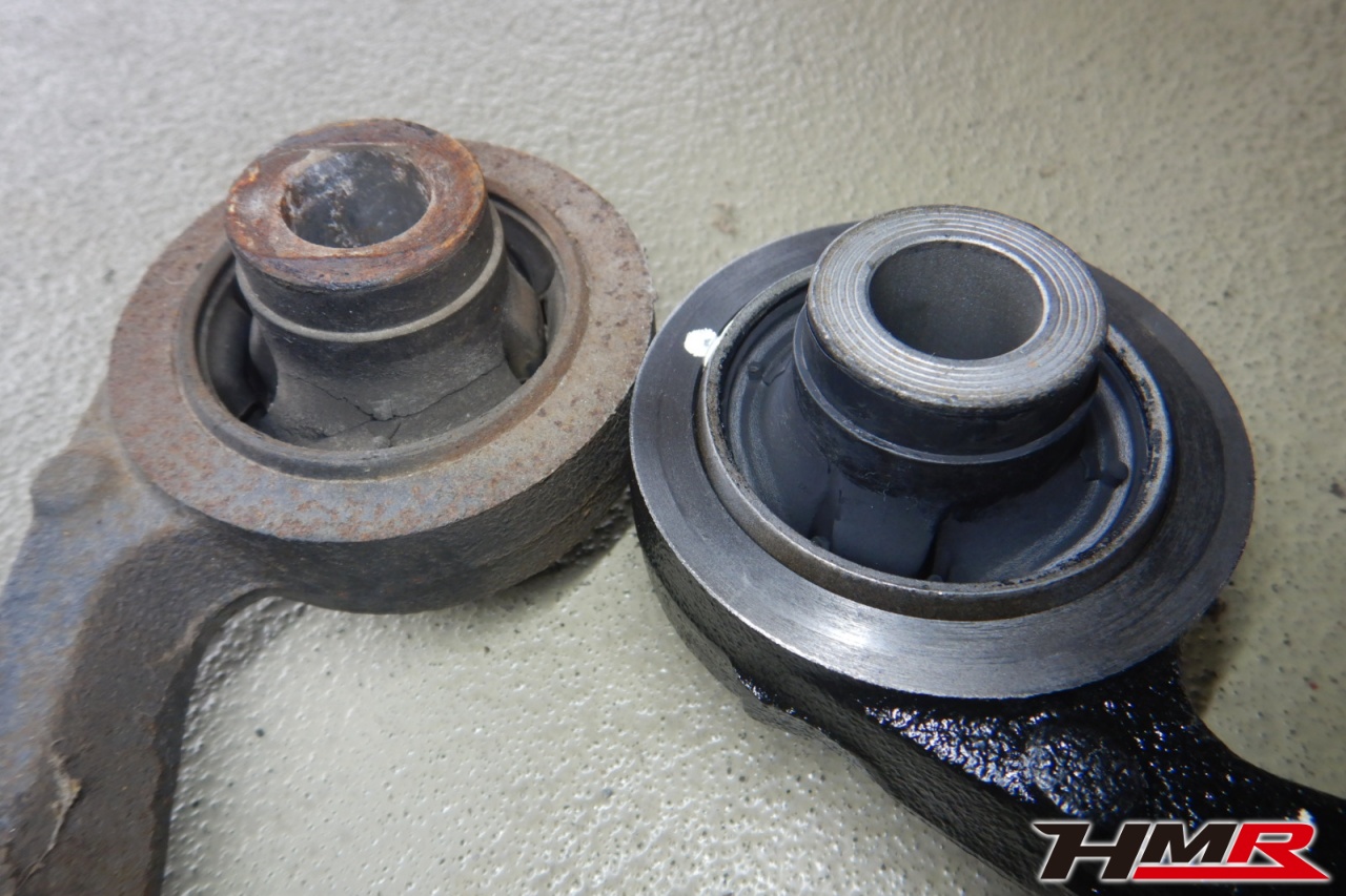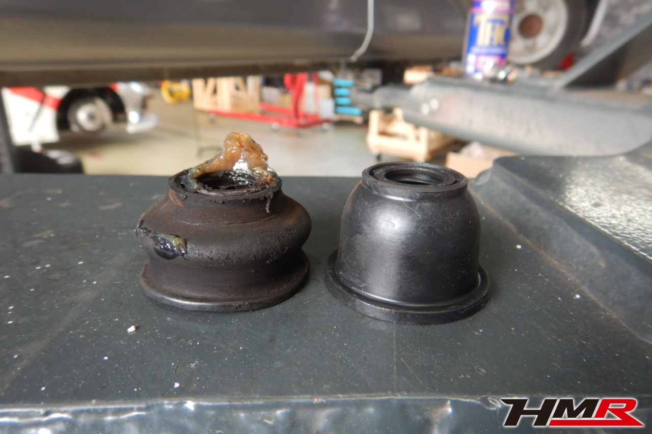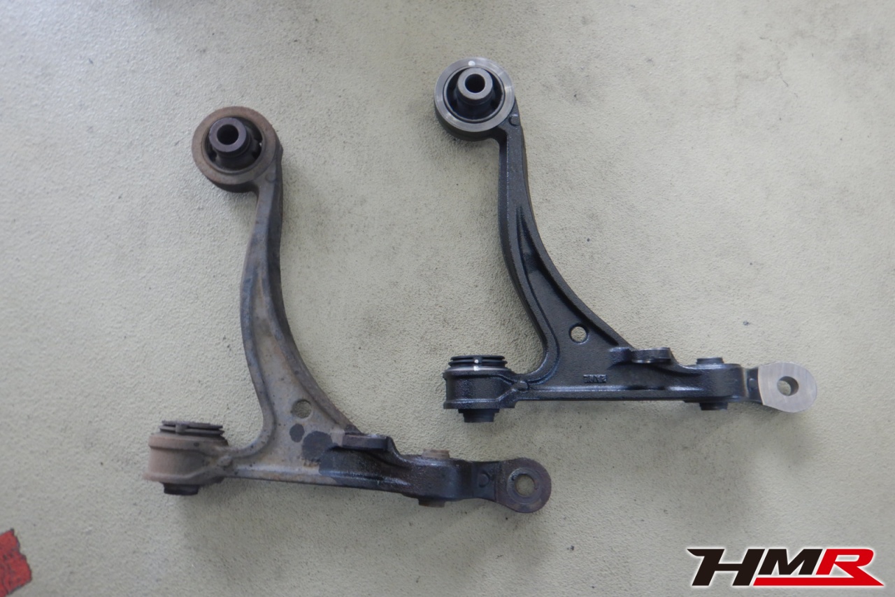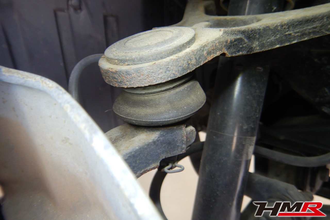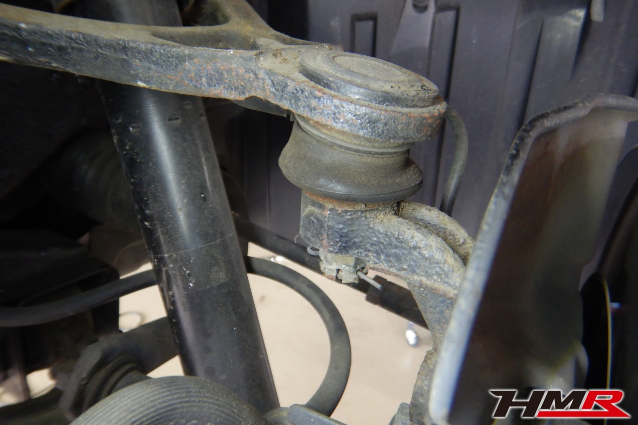 ハブベアリング・ボールジョイント、アーム・リンク類のガタ、ブッシュ・ブーツ類の劣化、エンジン・ミッション・デフからのオイル漏れと各マウント類、タイヤ溝の残量、空気圧の点検しました。右側フロントタイロッドエンドブーツ、左右フロントロアアームにヒビが見られましたので交換しました。