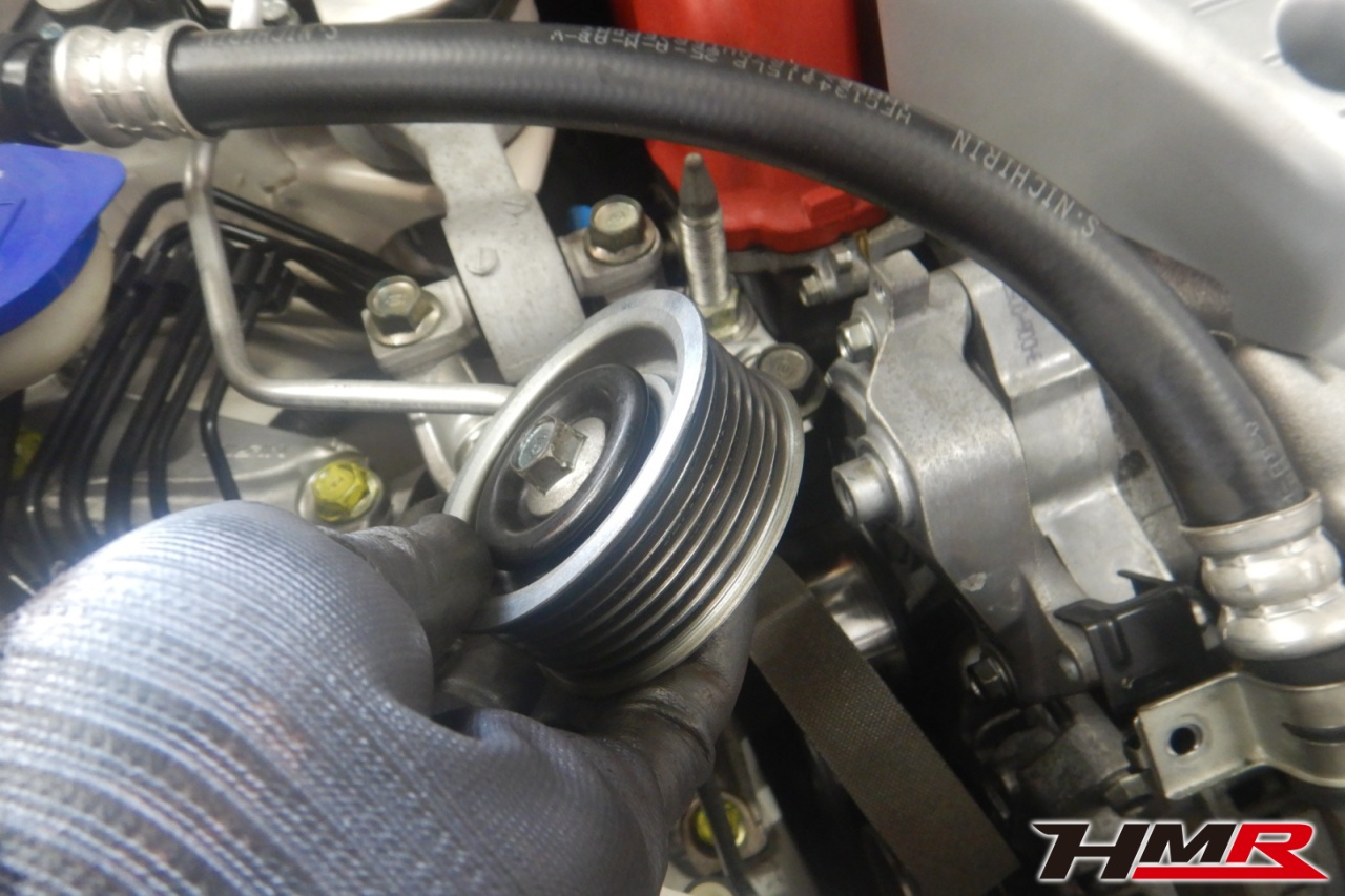バッテリー、インテークホース、エアクリーナー、補機ベルト、プラグ、ブレーキ・クラッチマスターシリンダー、各部ゴム類の劣化、パッキン類・シール類からのオイル滲み・漏れ、ラジエターの劣化、冷却水漏れ、その他異音などをチェックしました。アイドラープーリー、テンショナープーリーから異音が聞こえましたので交換しました。
