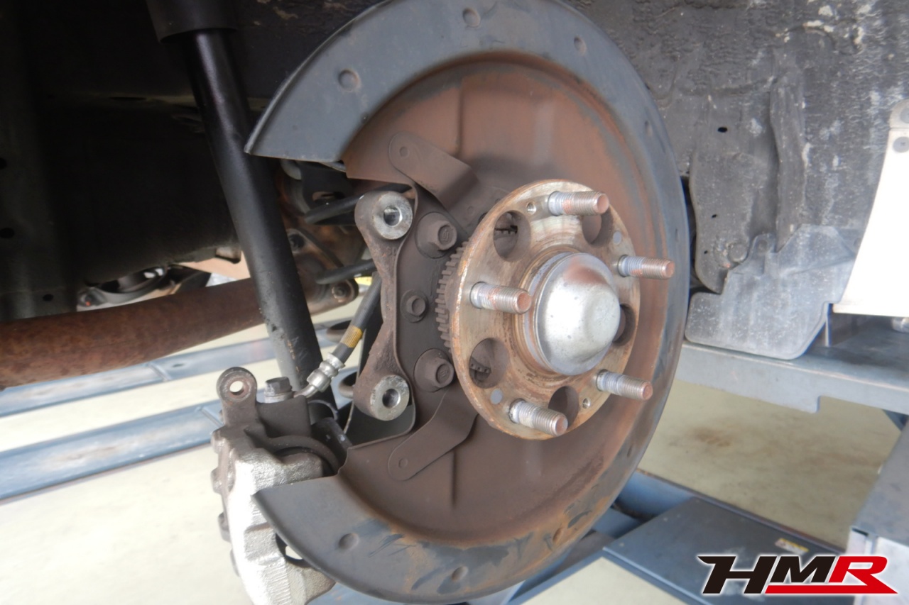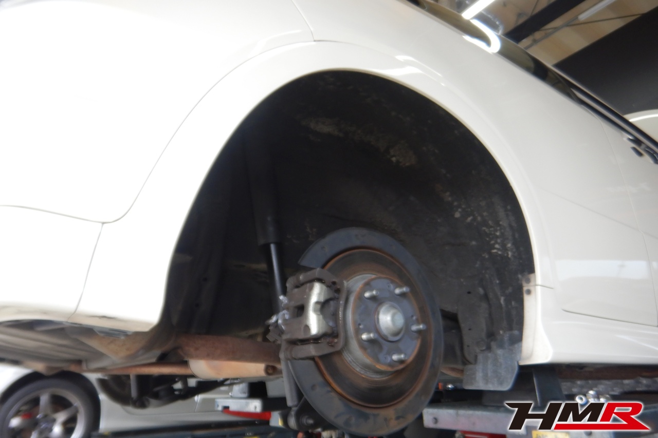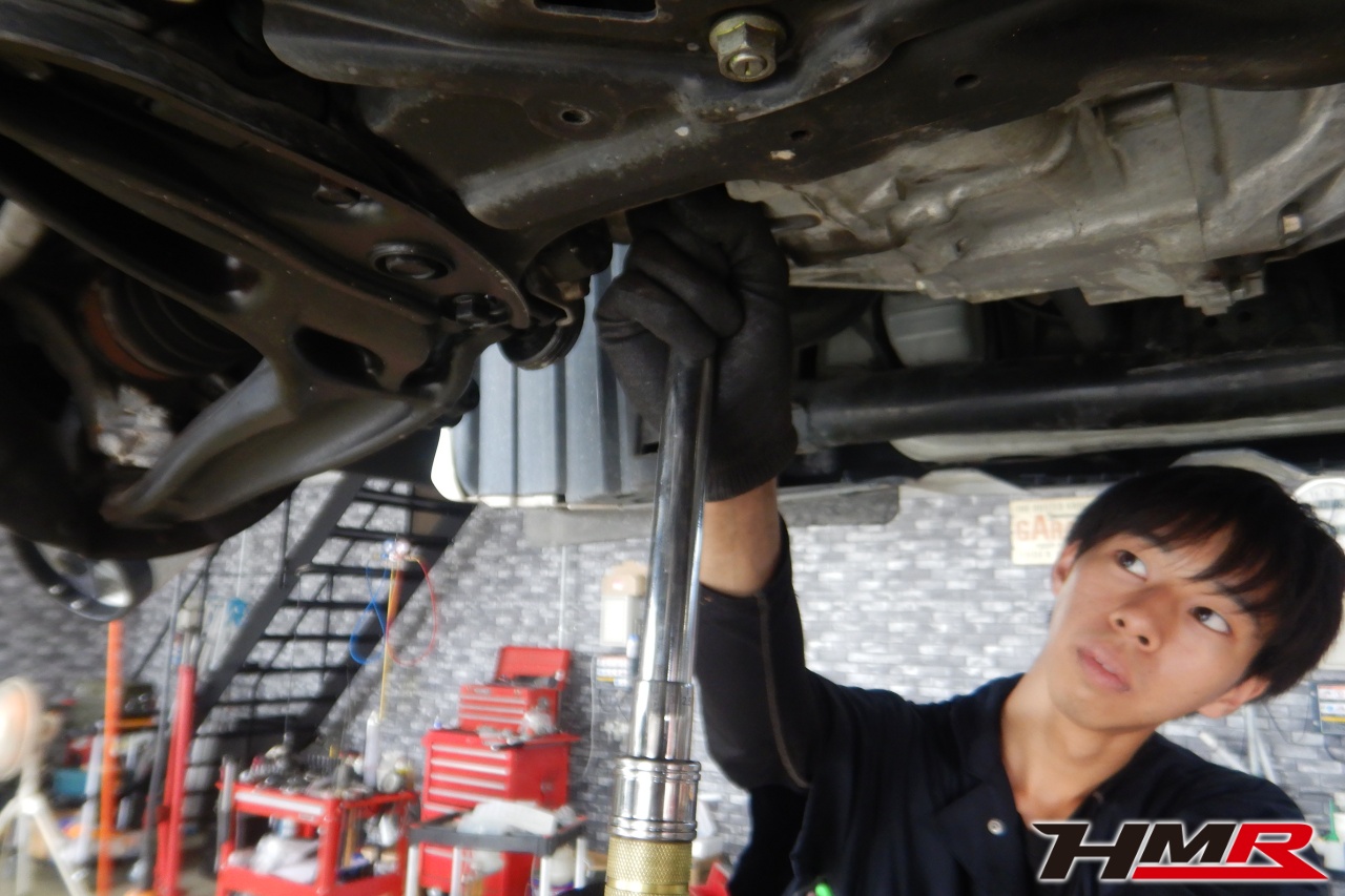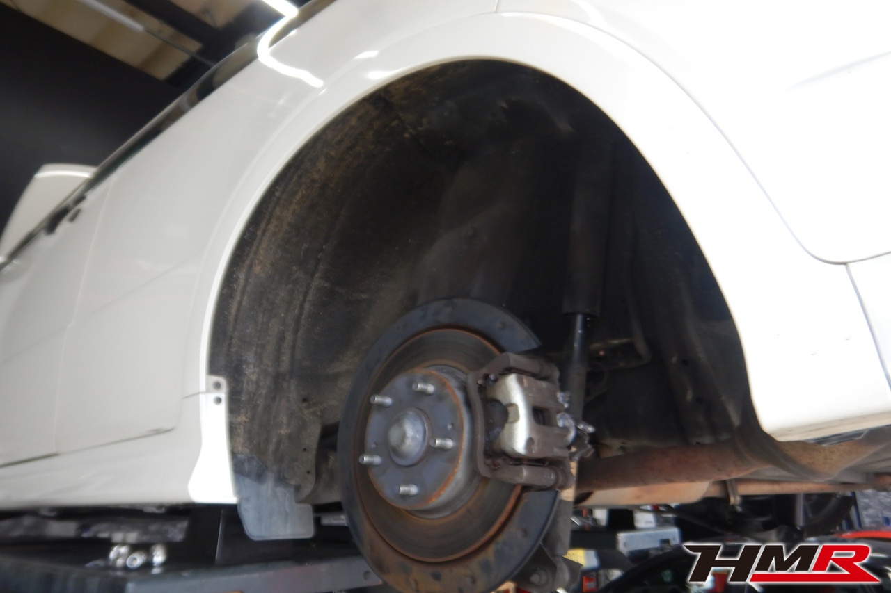 ハブベアリング・ボールジョイント、アーム・リンク類のガタ、ブッシュ・ブーツは類の劣化、エンジン・ミッション・デフからのオイル漏れと各マウント類、タイヤ溝の残量、空気圧の点検しました。右側リアハブベアリングから異音が聞こえましたので交換しました。