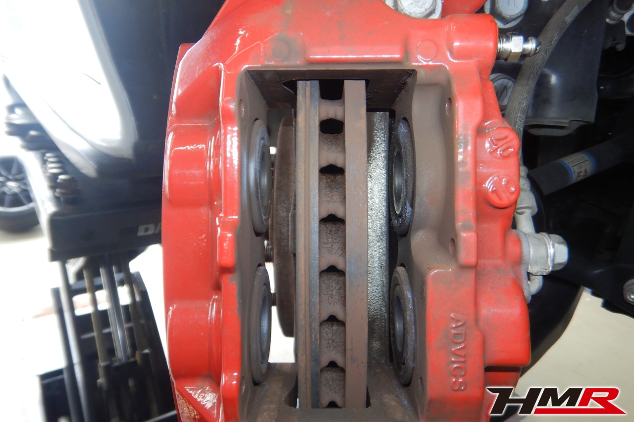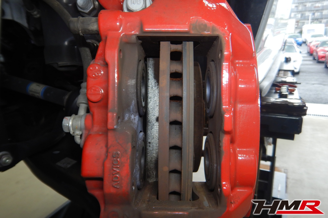 ブレーキキャリパーシール・キャリパーピストン、パッドの残量、ブレーキホースの劣化、ブレーキディスクローターの摩耗をチェックしました。パッドの残量はフロント7.1mm・リア8.8mmでした。