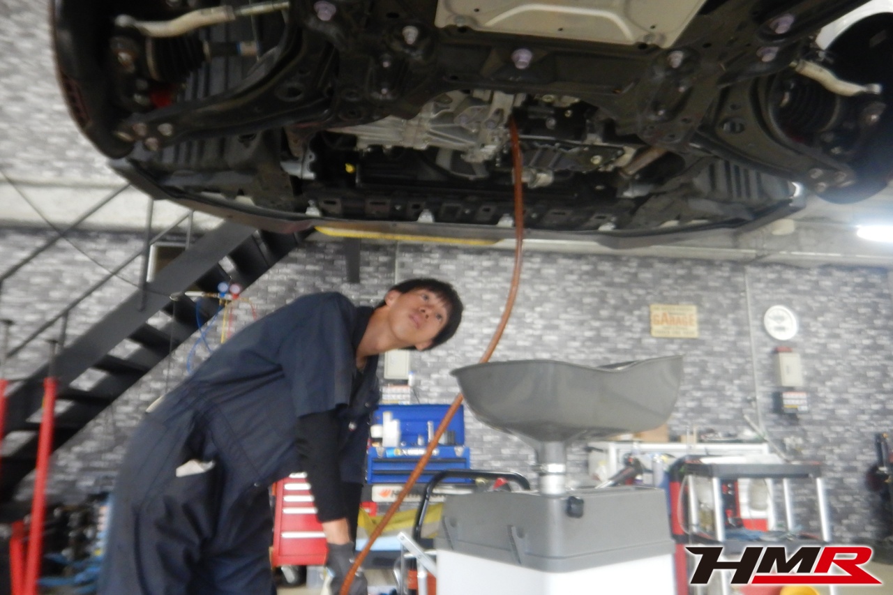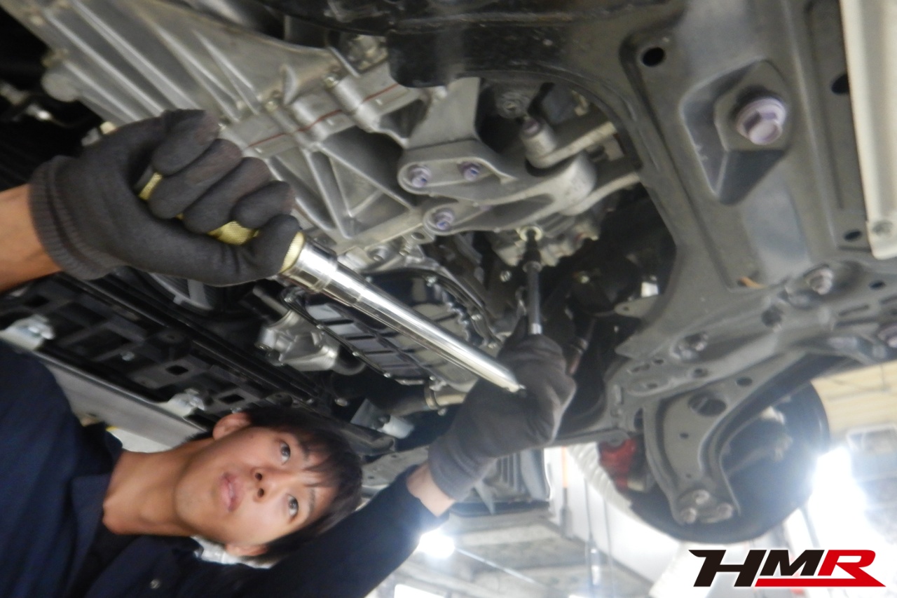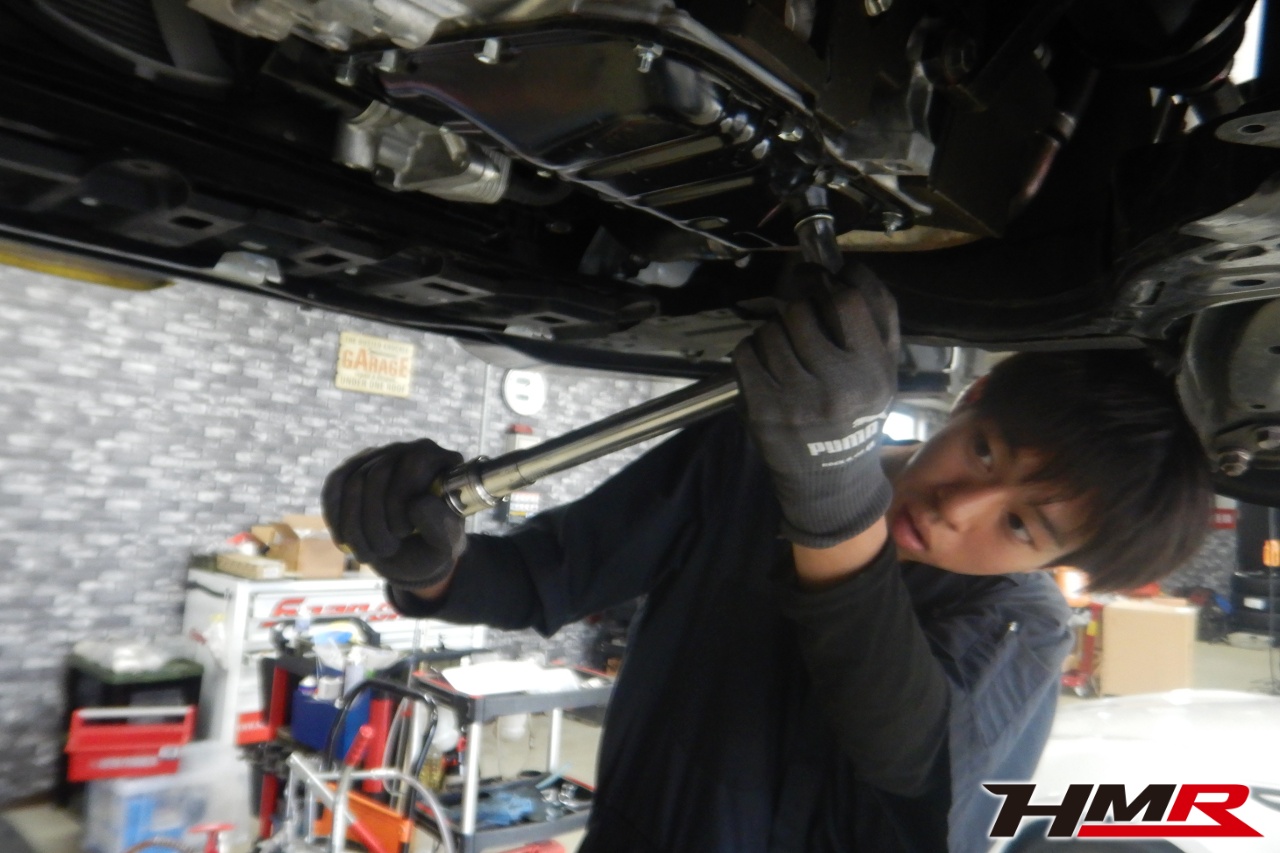 ハブベアリング・ボールジョイント、アーム・リンク類のガタ、ブッシュ・ブーツ類の劣化、エンジン・ミッション・デフからのオイル漏れと各マウント類、タイヤ溝の残量、空気圧の点検しました。特に問題ありませんでした。