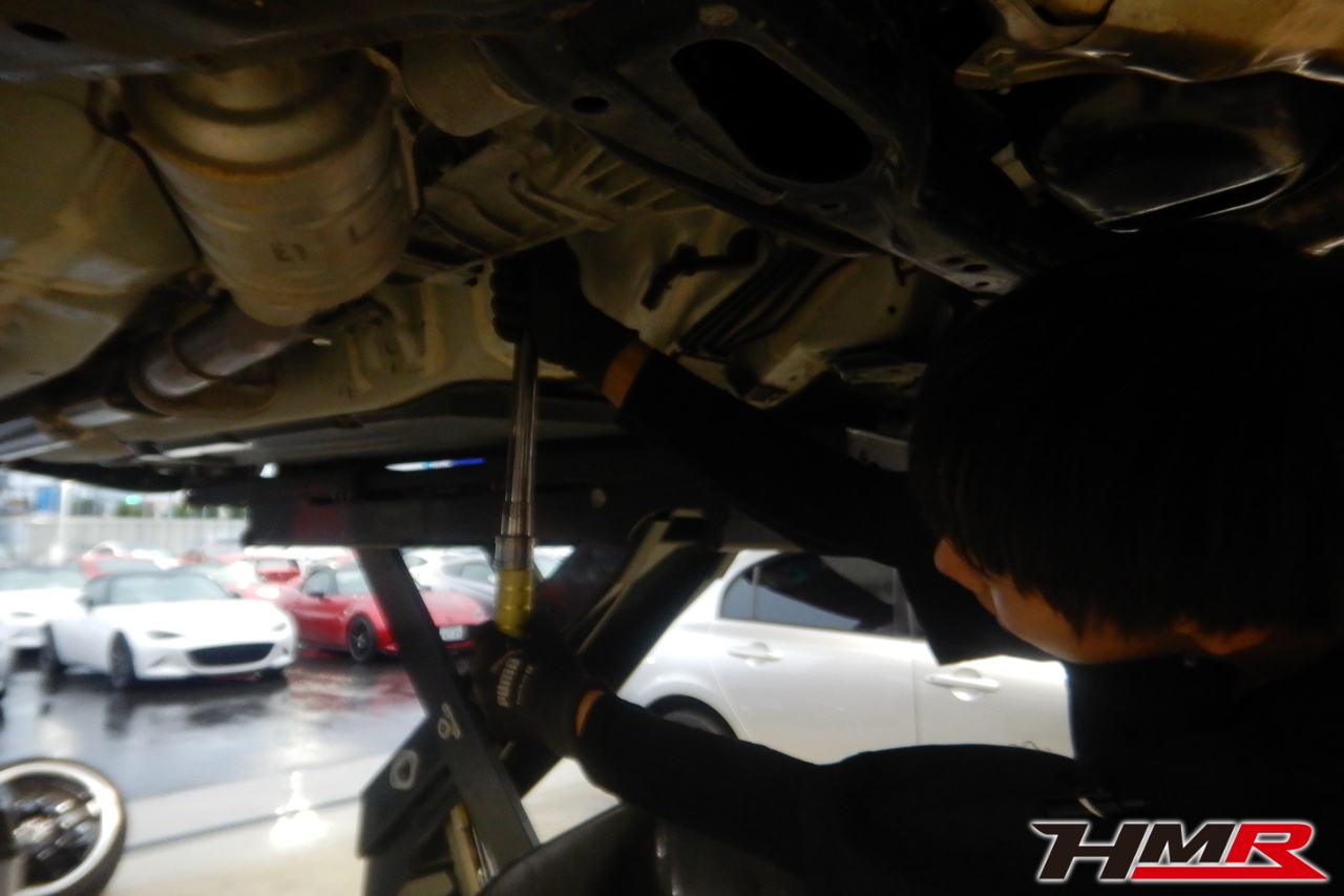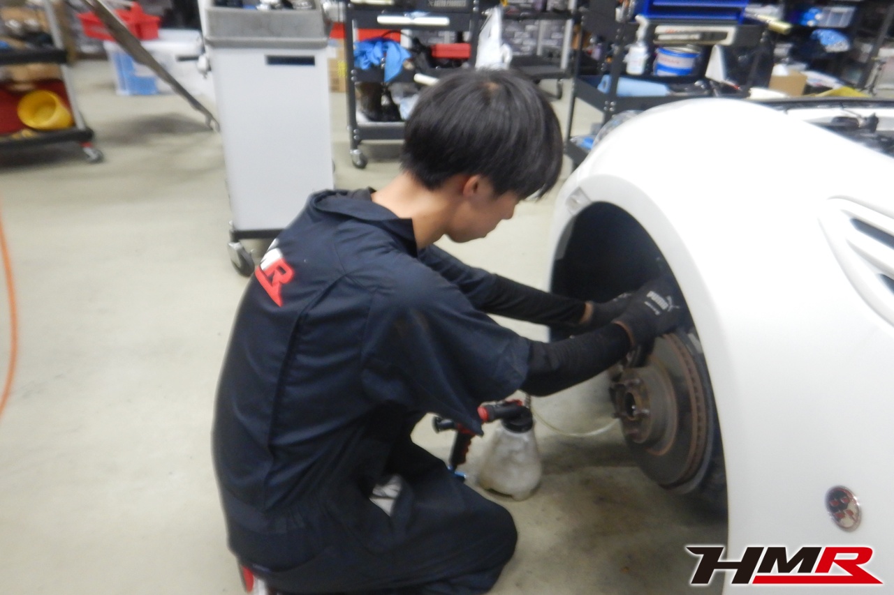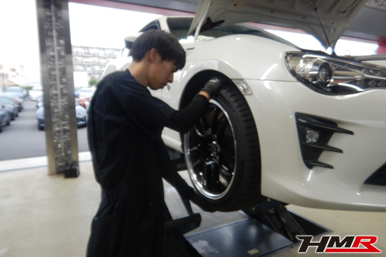 HMR(エイチエムアール)の秋山です。今回はワーク18インチ 社外車高調 純正ナビ装備のトヨタ86(ZN6)2.0GTの納車前点検整備を行いました。担当メカニックは手代木です。