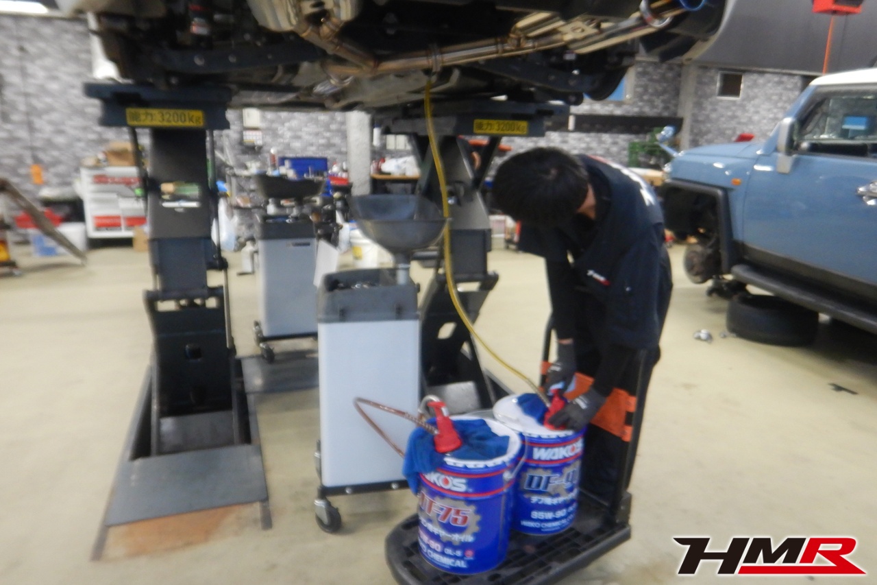 エンジンオイル、オイルフィルター、オイルフィルターセンターボルト、ミッションオイル、リアデフオイル、クーラント、ブレーキフルード、を交換しました。エンジンオイルはWAKO’SプロステージS 10W-40、ミッションオイルはWAKO’Sギアオイル MT-75 リアデフオイルはWAKO’S ギアオイルMG-90に交換しています。