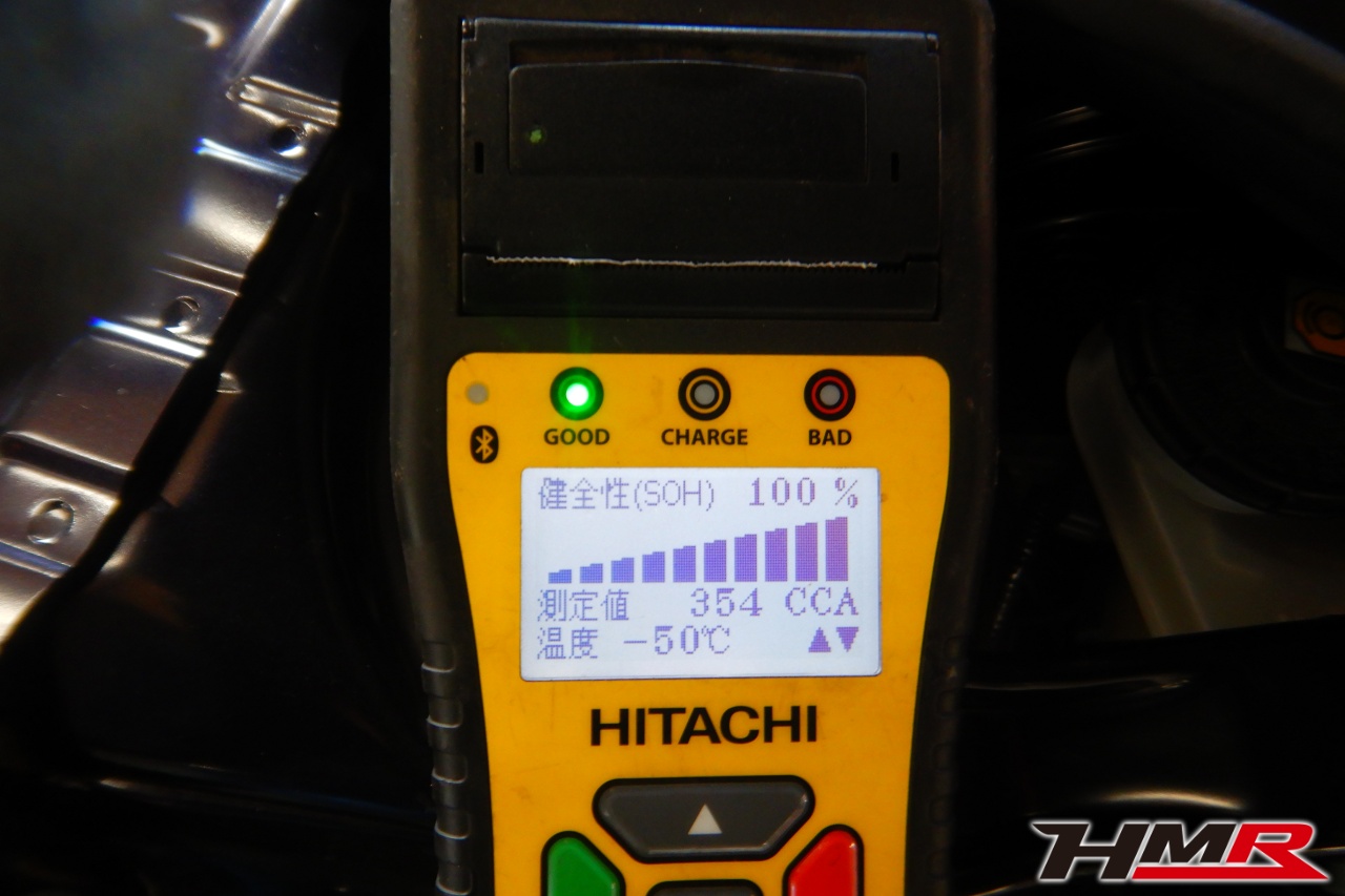 バッテリー、インテークホース、エアクリーナー、補機ベルト、プラグ、ブレーキ・クラッチマスターシリンダー、各部ゴム類の劣化、パッキン類・シール類からのオイル滲み・漏れ、ラジエターの劣化、冷却水漏れ、その他異音などをチェックしました。特に問題ありませんでした。