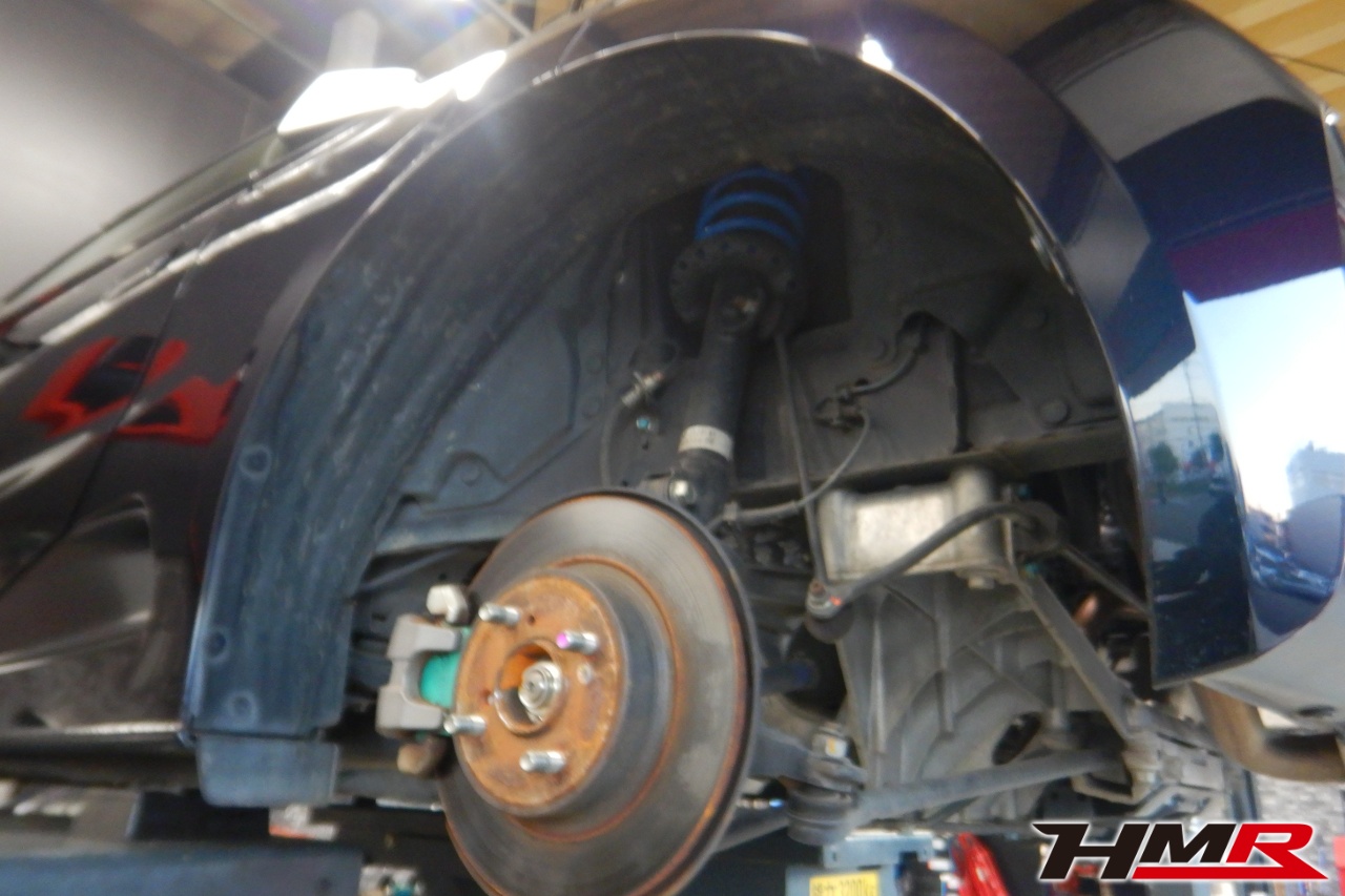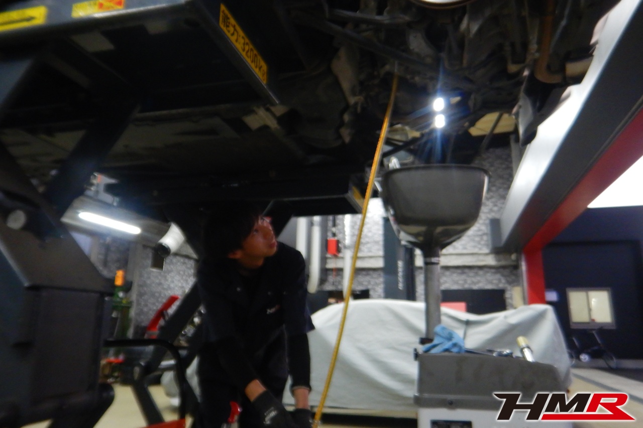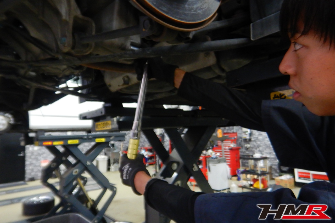 ハブベアリング・ボールジョイント、アーム・リンク類のガタ、ブッシュ・ブーツ類の劣化、エンジン・ミッション・デフからのオイル漏れと各マウント類、タイヤ溝の残量、空気圧の点検しました。特に問題ありませんでした。