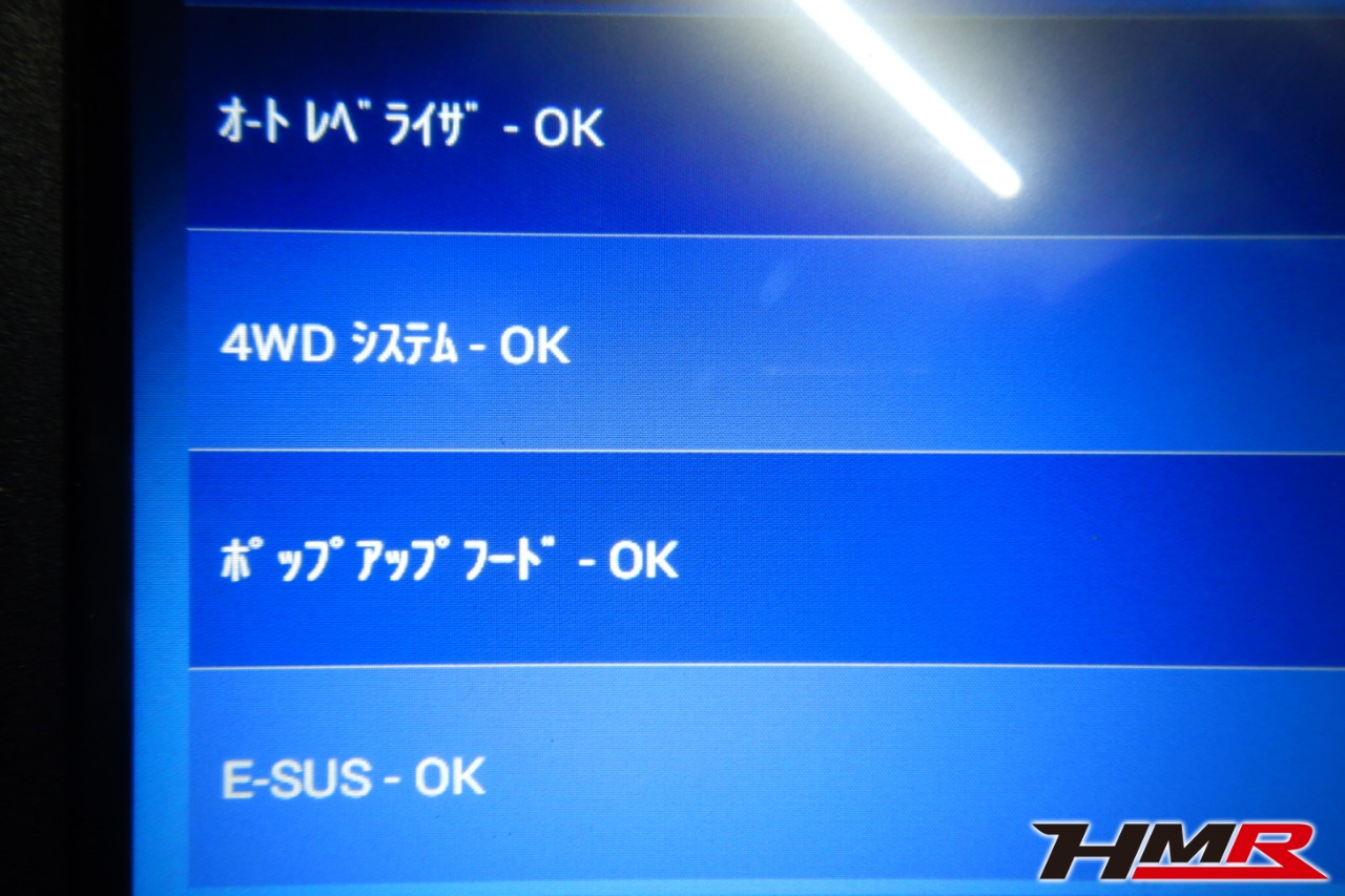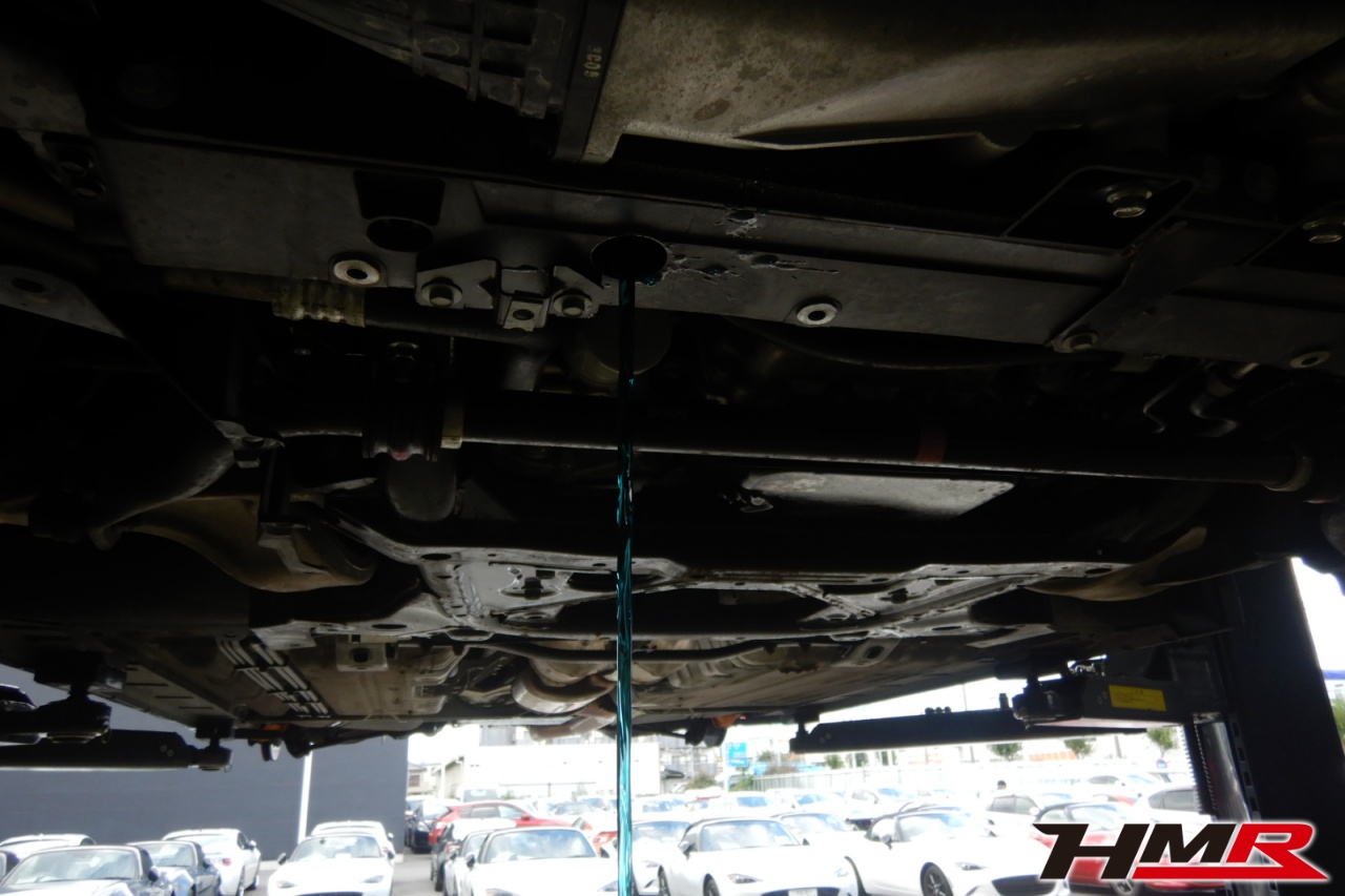 ハブベアリング・ボールジョイント、アーム・リンク類のガタ、ブッシュ・ブーツ類の劣化、エンジン・ミッション・デフからのオイル漏れと各マウント類、タイヤ溝の残量、空気圧の点検しました。特に問題ありませんでした。