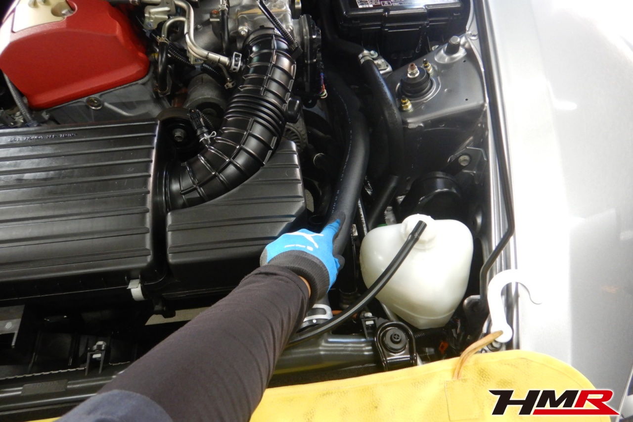 バッテリー、インテークホース、エアクリーナー、補機ベルト、プラグ、ブレーキ・クラッチマスターシリンダー、各部ゴム類の劣化、パッキン類・シール類からのオイル滲み・漏れ、ラジエターの劣化、冷却水漏れ、その他異音などをチェックしました。インテークチューブが切れていましたので交換しました。