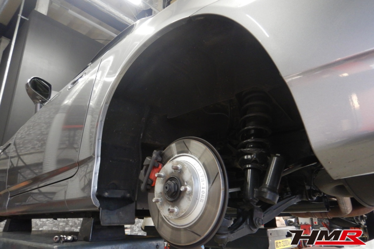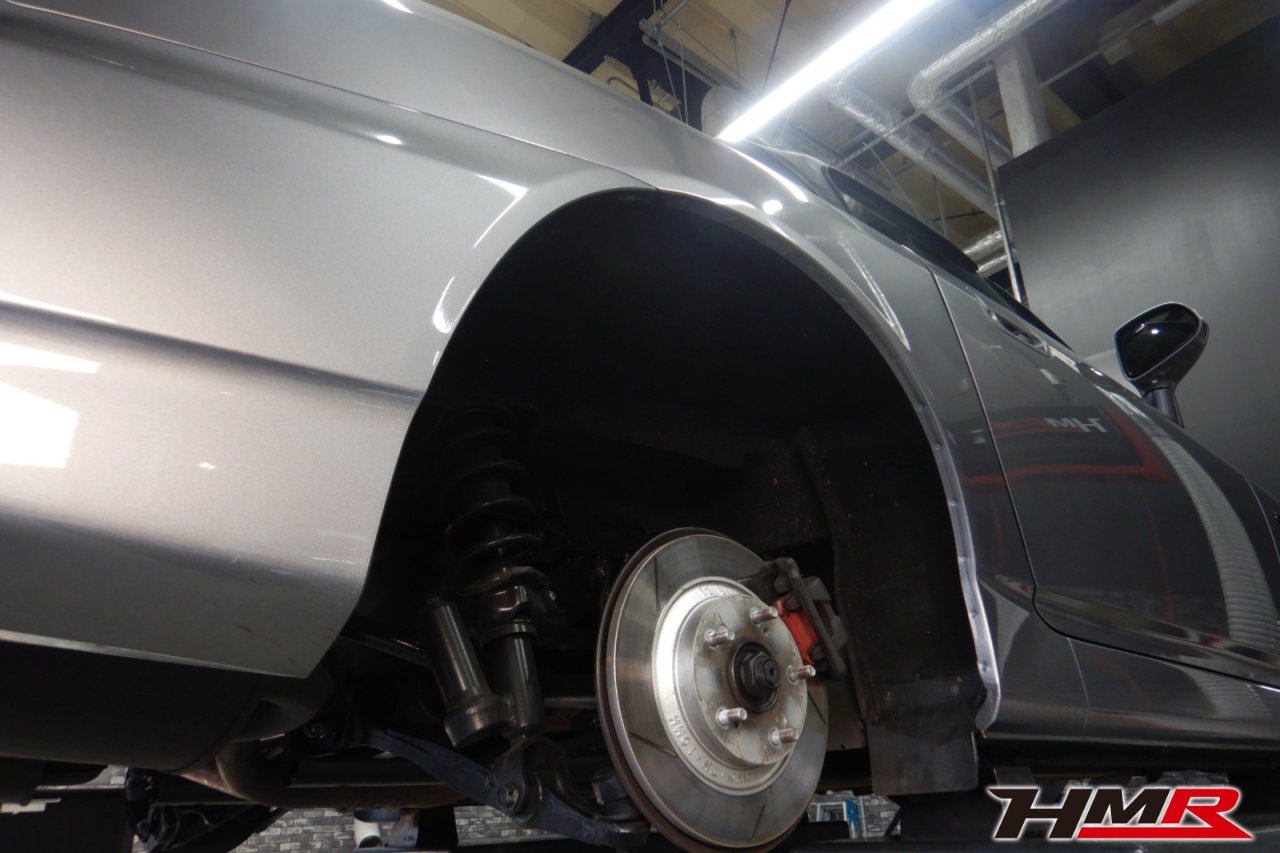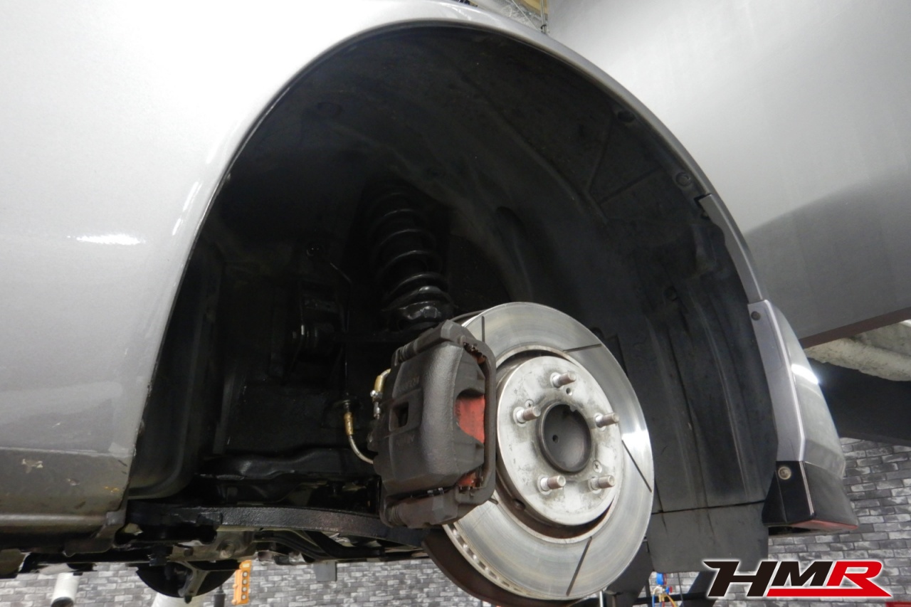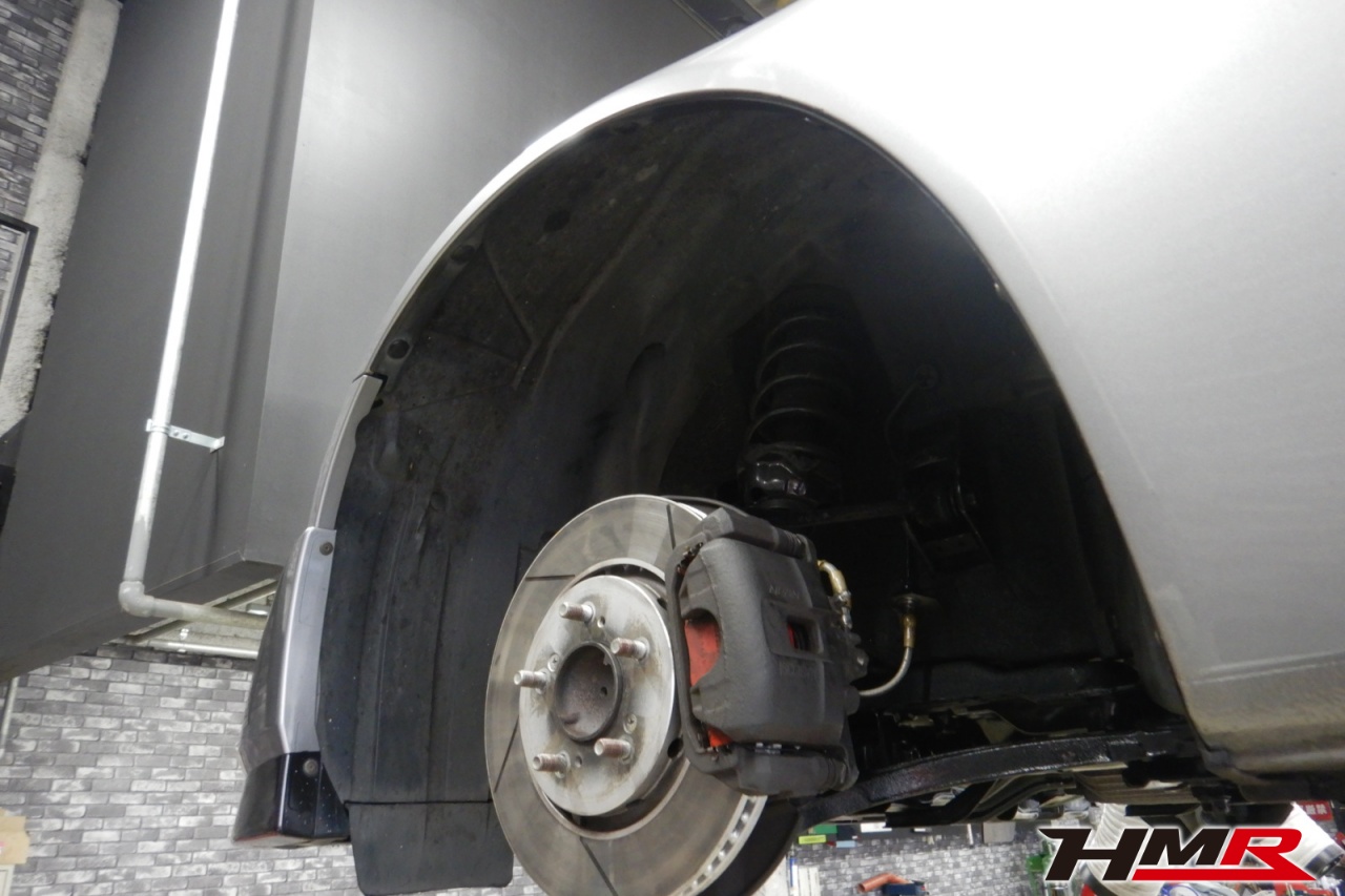 ハブベアリング・ボールジョイント、アーム・リンク類のガタ、ブッシュ・ブーツ類の劣化、エンジン・ミッション・デフからのオイル漏れと各マウント類、タイヤ溝の残量、空気圧の点検を行いました。右側フロントスタビリンクブーツが切れていましたので交換しました。