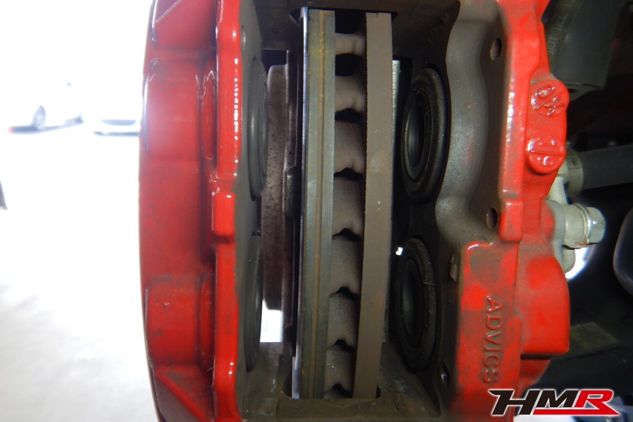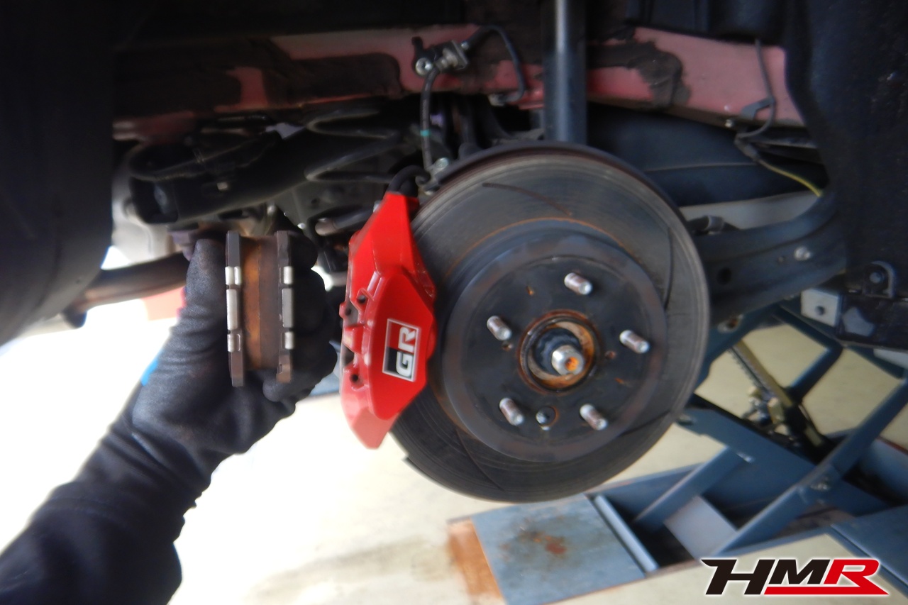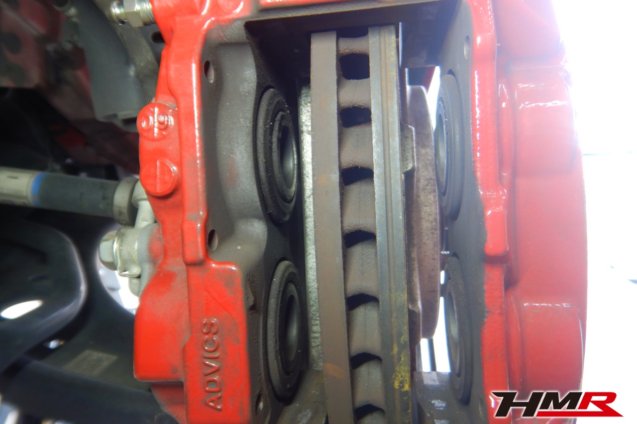 ブレーキキャリパーシール・キャリパーピストン、パッドの残量、ブレーキホースの劣化、ブレーキディスクローターの摩耗をチェックしました。パッドの残量はフロント7.6mm・リア8.6mmでした。