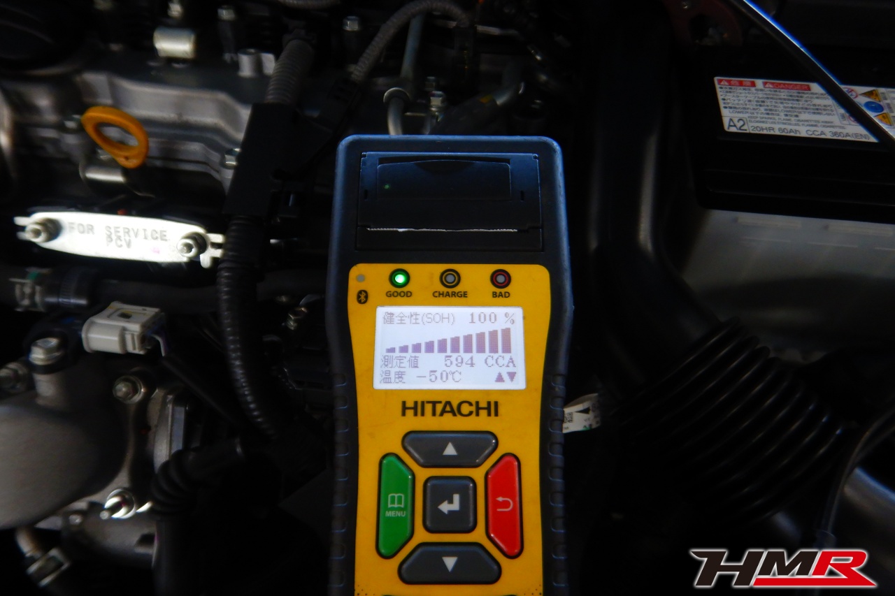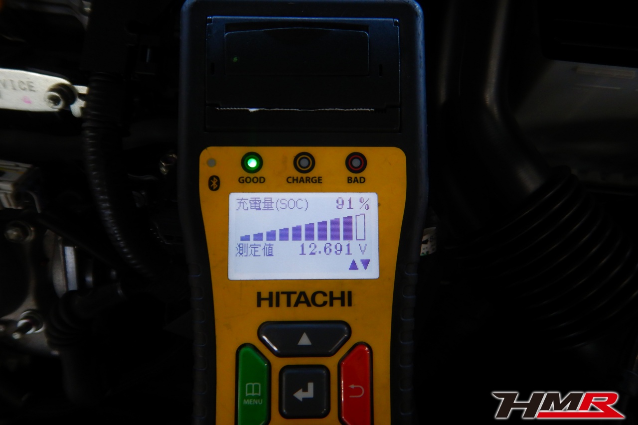 バッテリー、インテークホース、エアクリーナー、補機ベルト、プラグ、ブレーキ・クラッチマスターシリンダー、各部ゴム類の劣化、パッキン類・シール類からのオイル滲み・漏れ、ラジエターの劣化、冷却水漏れ、その他異音などをチェックしました。特に問題ありませんでした。
