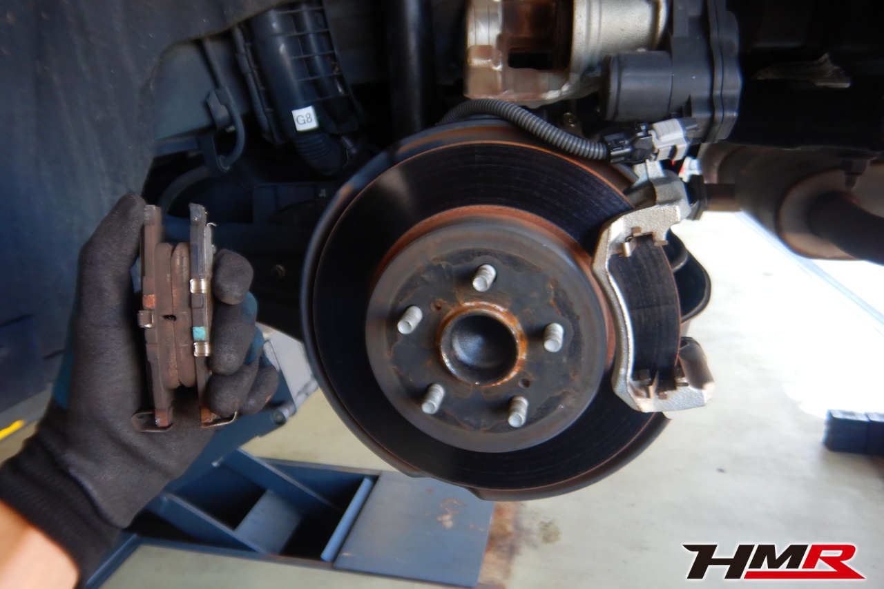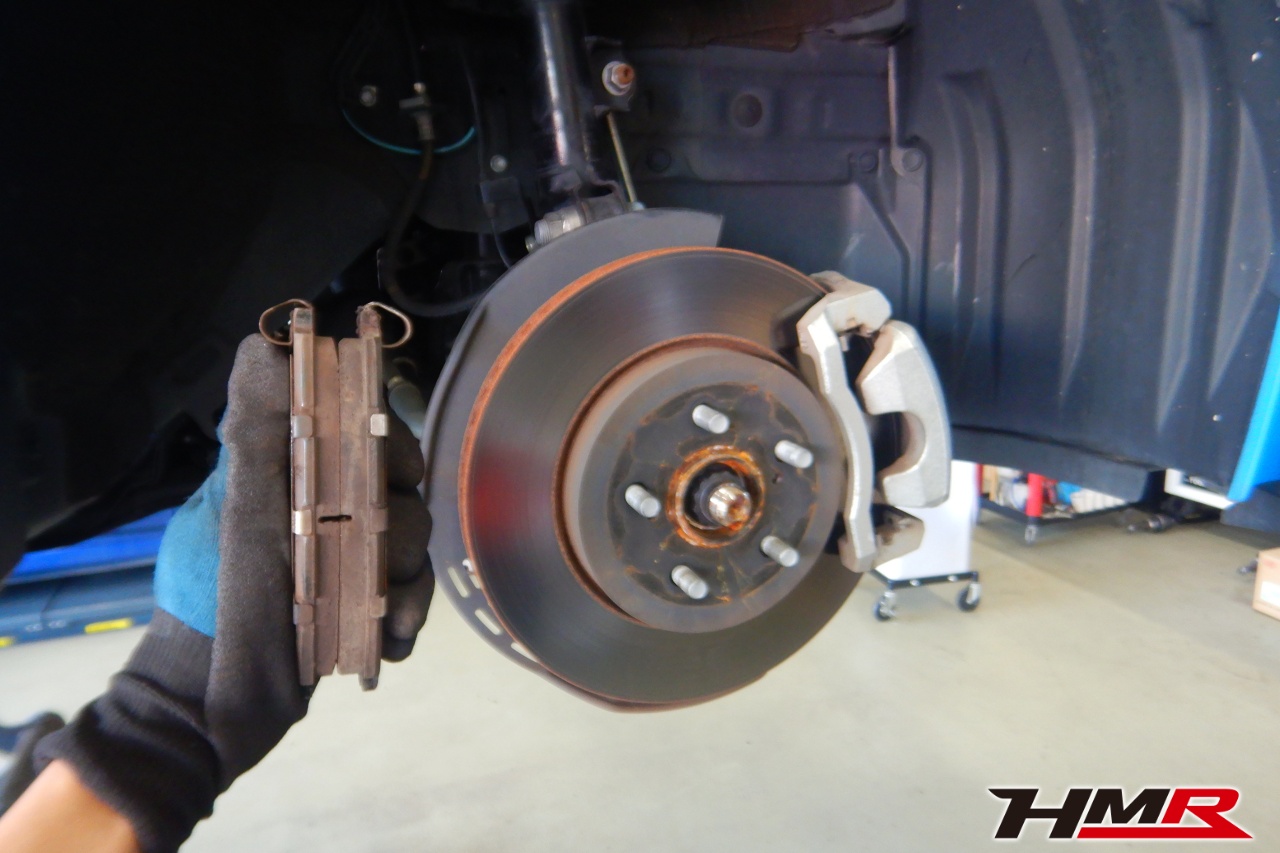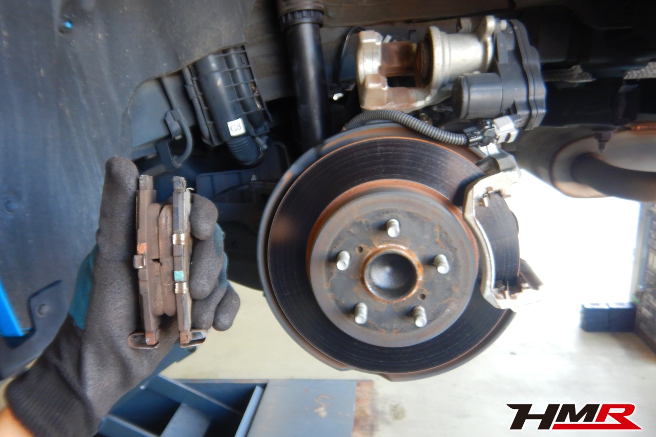 ブレーキキャリパーシール・キャリパーピストン、パッドの残量、ブレーキホースの劣化、ブレーキディスクローターの摩耗をチェックしました。特に問題ありませんでした。パッドの残量はフロント7.6mm・リア7.0mmでした。