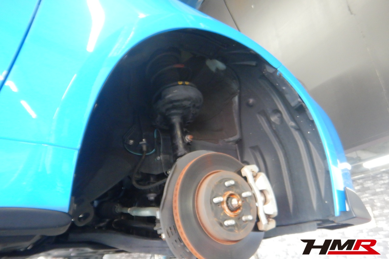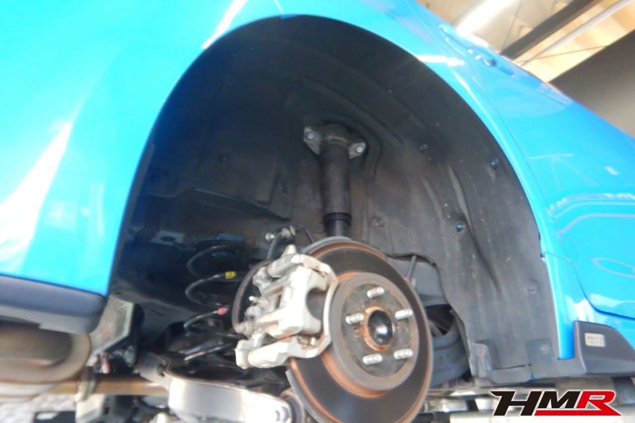 ハブベアリング・ボールジョイント、アーム・リンク類のガタ、ブッシュ・ブーツ類の劣化、エンジン・ミッション・デフからのオイル漏れと各マウント類、タイヤ溝の残量、空気圧の点検しました。特に問題ありませんでした。