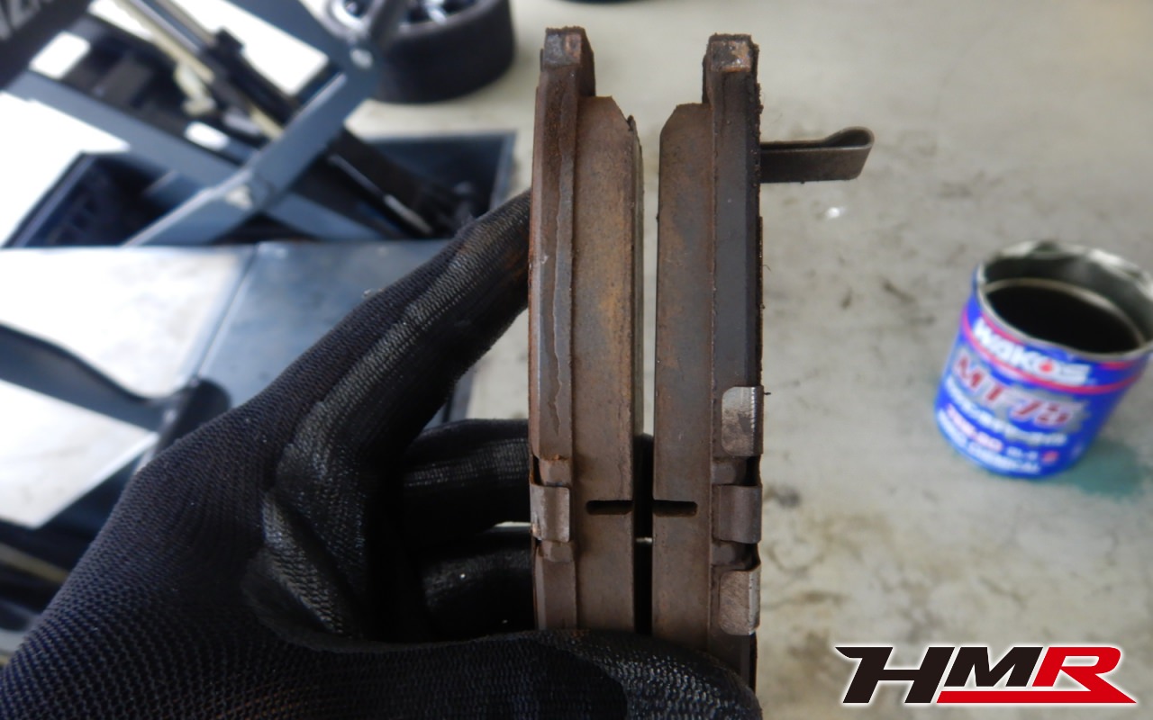 続いてブレーキ廻りの点検をしていきます。まずブレーキキャリパーシールの状態やキャリパーピストンを確認していきます。特に問題ありませんでした。  キャリパーシールが劣化することでピストン内に水分が侵入することでサビが発生します。それをそのまま放置しているとキャリパーの動きを阻害されてしまい、ブレーキの引きずり症状や固着を引き起こしてしまう可能性があります。 ブレーキパッドの残量をチェックしていきます。フロント8mm・リア6mmでした。 まだまだこのまま使えますね。