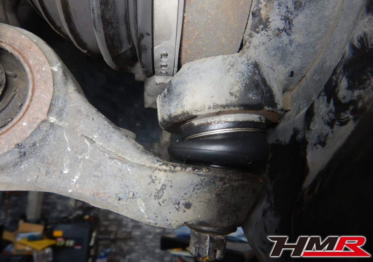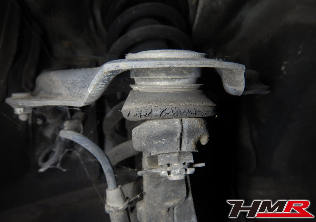エンジンルーム周りから点検していきます。 まず最初にバッテリーの健全性を点検しましたが特に問題なく良好な状態でした。健全性が低いと正常な充電ができなくなったり、本来の電力を発揮出来無くなり走行に支障をきたす場合があります。近年だと高出力のスマートフォン・タブレット向けの充電ソケットなどでバッテリーに負荷が掛かりやすくなっていますので注意が必要です。バッテリーの交換時期は使用状況によりますが3〜5年のサイクルで交換することをおススメいたします。 インテークホースの点検を行いました。特に問題ありませんでした。インテークホースは経年劣化で蛇腹部分に亀裂が入ると、そこからエアフィルターを通さない空気を吸ってしまい、エンジン不調に繋がる可能性があります。定期的な点検をおススメいたします。 エアフィルターの点検を行います。所々に煤やゴミで黒く変色しておりましたので交換させていただきました。汚れで目詰まりを起こすと燃費悪化やエンジン本来の性能を発揮できなくなります。定期的にケースを開けて目視で確認してみましょう。  次に冷却系廻りを点検していきます。ホースに漏れはありませんでした。経年劣化していくと亀裂が入りそこから冷却水が漏れてしまいエンジンがオーバーヒートを起こす可能性があります。定期的な点検をおススメいたします。 続いて補機ベルトの状態およびオートテンショナーの異音やガタが無いかを点検していきます。問題ありませんでした。ベルトが切れてしまうとバッテリー充電が出来なくなり最悪エンジンが停止する恐れがあります。定期的な点検をおススメいたします。 続いてプラグの点検を行いました。4本とも特に問題ありませんでした。先端の部分がひどく汚れてしまうとエンジンが掛かりづらくなったり、走行中に失火が起こり故障の原因となります。エンジンが掛かりづらくなるなどの症状が出た場合は当店にご相談ください。 続いてリフトアップして足廻りをチェックしていきます。まず最初にタイヤを縦横に揺らしてハブベアリングとボールジョイントのガタがないかチェックを行います。特に問題ありませんでした。走行中に異音やハンドルのガタつきなどを感じた場合は当店へお早めにご相談下さい。  足廻りのブッシュ・ブーツをチェックしていきます。ブッシュ・ブーツにヒビが入ってしまいそのままにしておくとそこからグリスが漏れ出したり、異物が侵入して足廻りの機能に支障をきたすだけではなく、車検を通過できなくなってしまいます。またそれ以外にもダンパーのオイル漏れがないかを点検していきます。写真はナックルロアーアームブーツですが、真ん中にヒビが薄く入っていましたので交換させていただきました。 ダンパーブッシュは経年劣化によるヒビは入ってきていましたね。この年代の車両はどれもこんな感じなので、ブッシュ類はどこかのタイミングでリフレッシュするといいですね。 こちらはフロントのアッパーアームブーツです。破れる寸前のヒビ割れが確認できます。こちらは破れると車検NGなので交換させていただきました。 フロントロアアームブッシュもヒビが入っています。こちらは車検はそのままでも通りますので、現状のままでのお渡しとなりますが、この年式の車両はどれもブッシュ劣化してきているので、フルリフレッシュするだけでも走りが変わります。 リアのアッパーアームのブッシュは今すぐの交換が必要なほどではありませんでしたが、細かなヒビが入っています。 続いてキャリパーの点検です。 キャリパーシールが劣化することでピストン内に水分が侵入することでサビが発生します。それをそのまま放置しているとキャリパーの動きを阻害されてしまい、ブレーキの引きずり症状や固着を引き起こしてしまう可能性があります。 ブレーキパッドの残量をチェックしていきます。前後ともに5mmでした。 まだ残量的にはすぐの交換が必要ではないですが、ちょうど半分くらいの残量になってきている状況です。