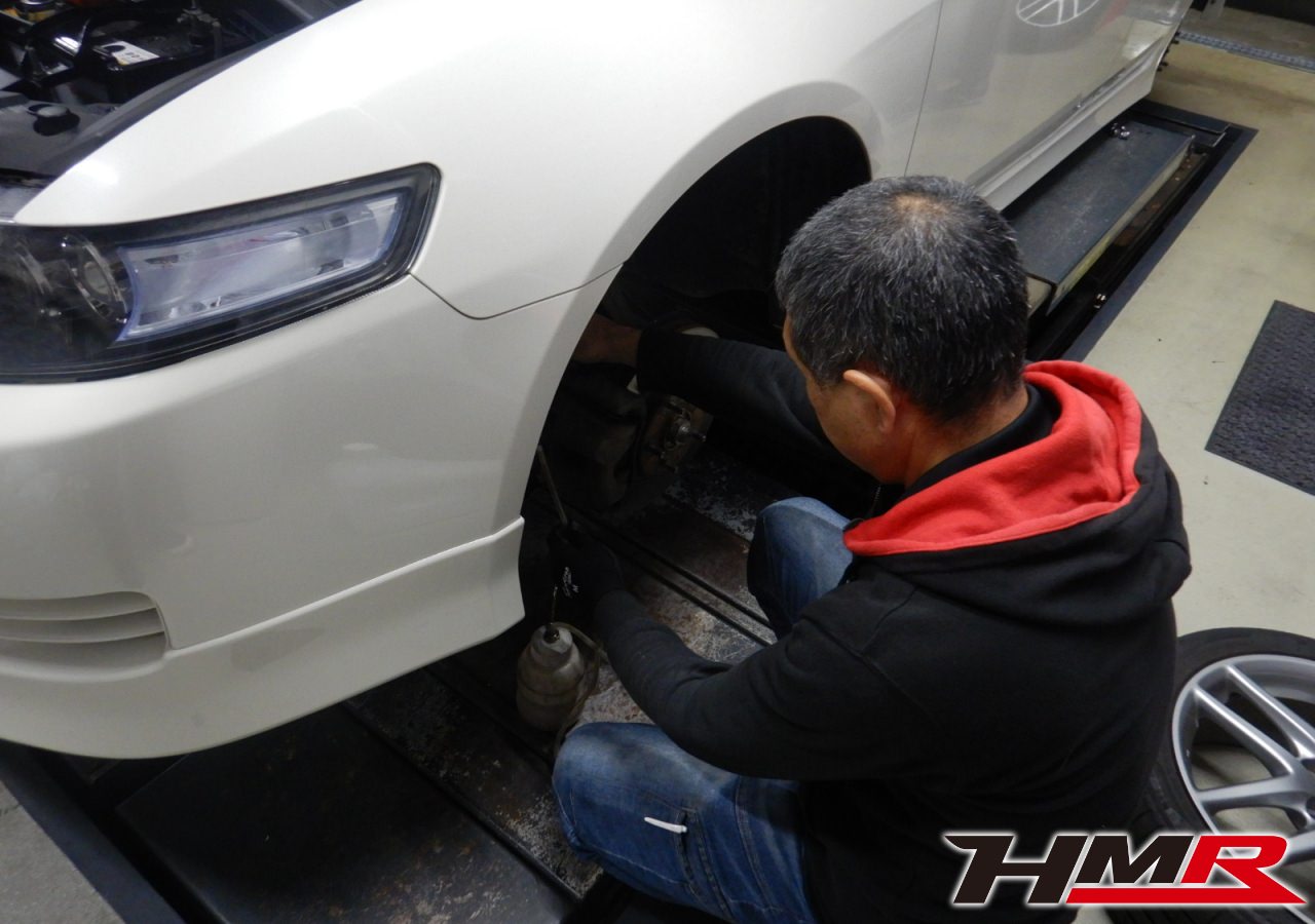 HMR(エイチエムアール)の栗原です。今回は無限リアスポイラー 純正エアロ&レカロシート装備のアコードユーロR(CL7)の納車前点検整備を行いました。担当メカニックはワタナベです。