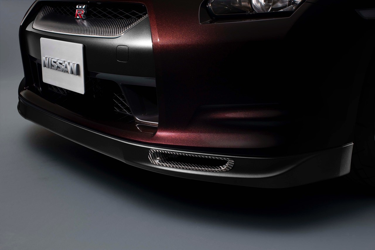 日産GT-R スペックVは、軽量化の為にカーボンを多用している。フロントマスク、リヤスポイラーのメイン部材、三分割構造のフロントアンダーカバーのリヤ部分である。