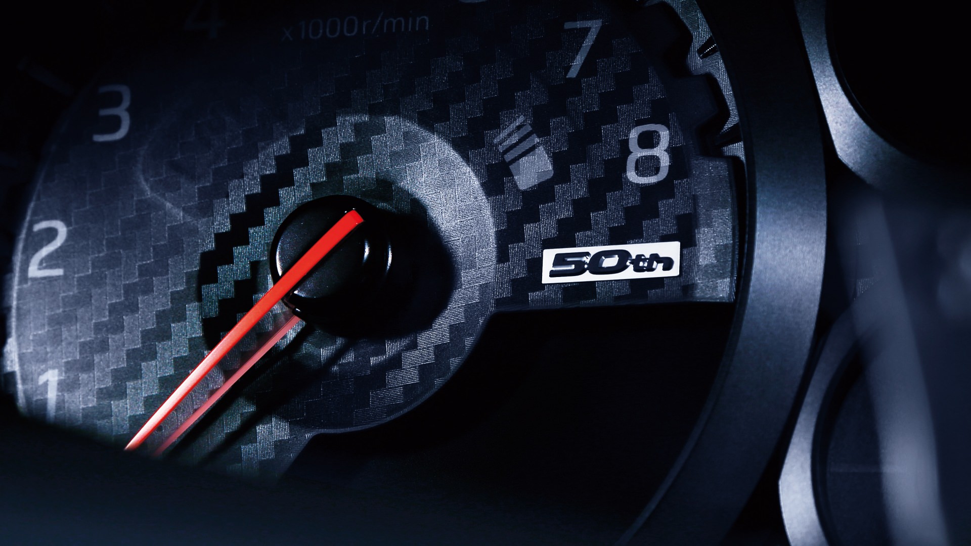 ・50周年記念ロゴ入りのブルースポークホイール(ワンガンブルーモデルのみ)