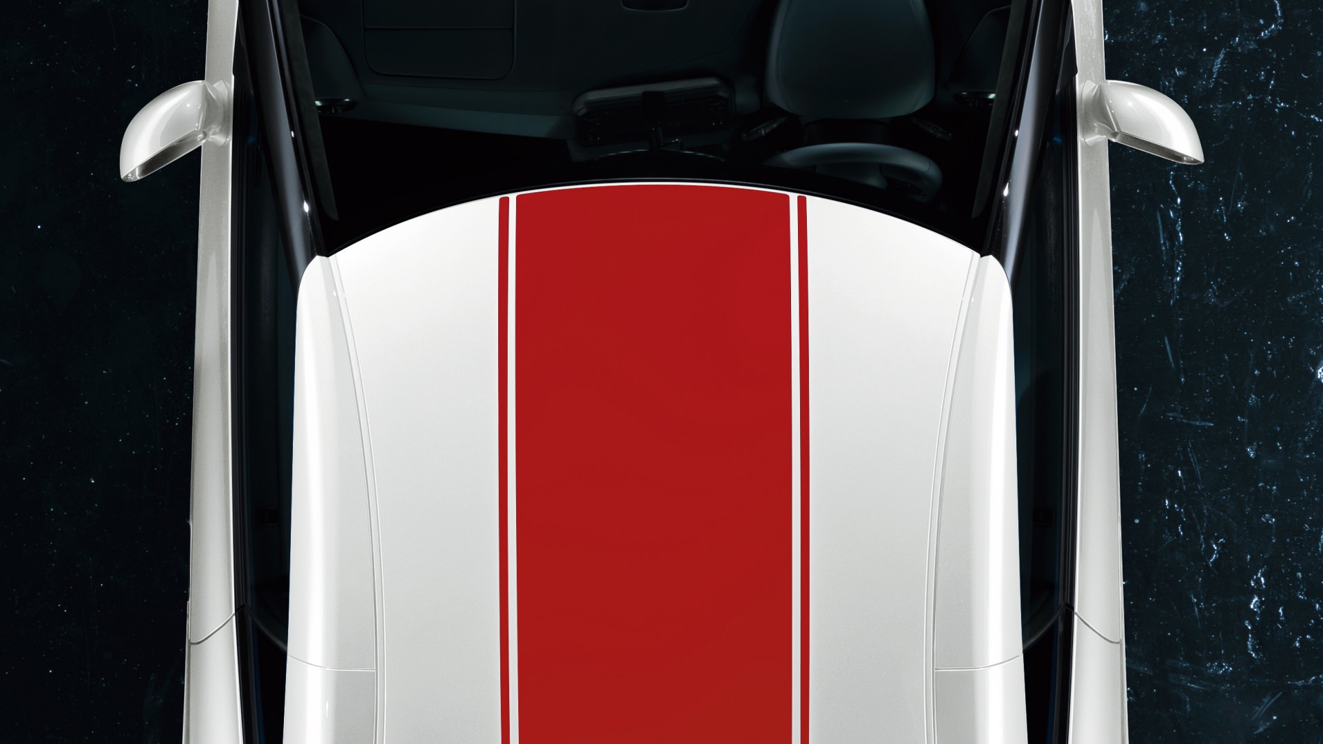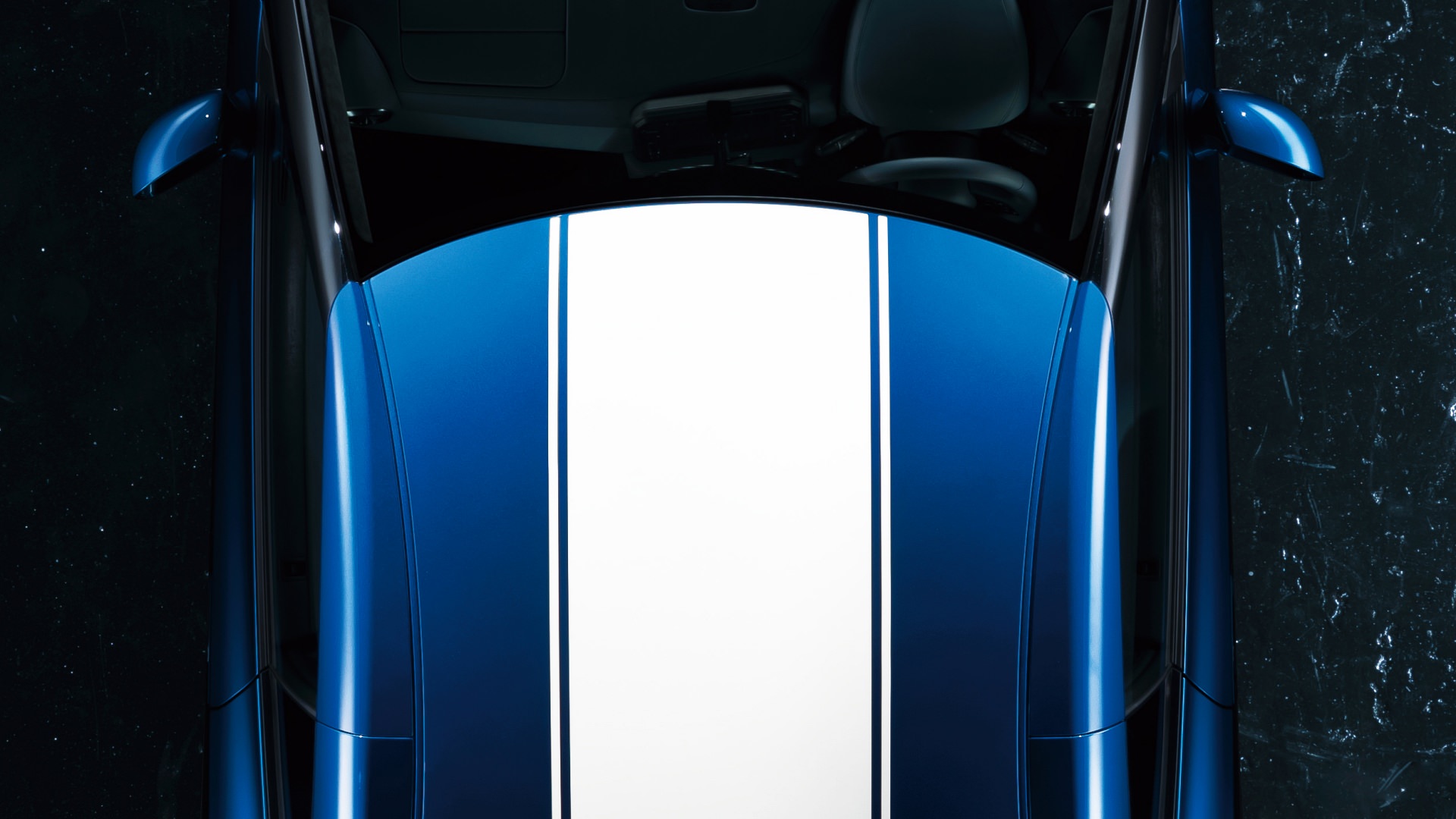 ・ボディカラーに合わせた、往年の日産のレースチームカラーを再現した専用ステッカー。ワンガンブルーは、ホワイトステッカー