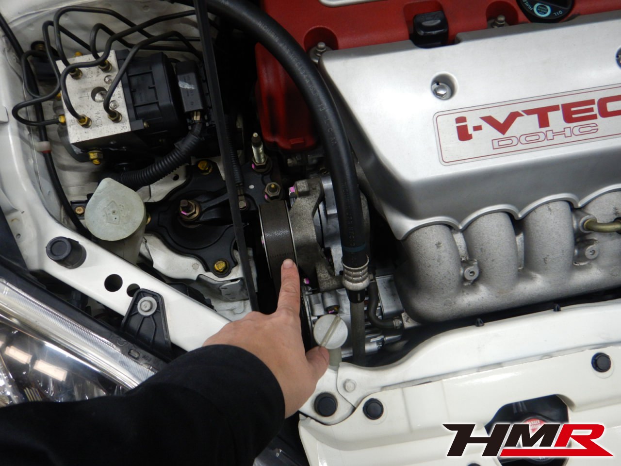 HMR(エイチエムアール)の栗原です。今回は純正17AW レカロシート装着ののシビックタイプR(EP3)の納車前点検整備を行いました。担当メカニックはホリグチです。