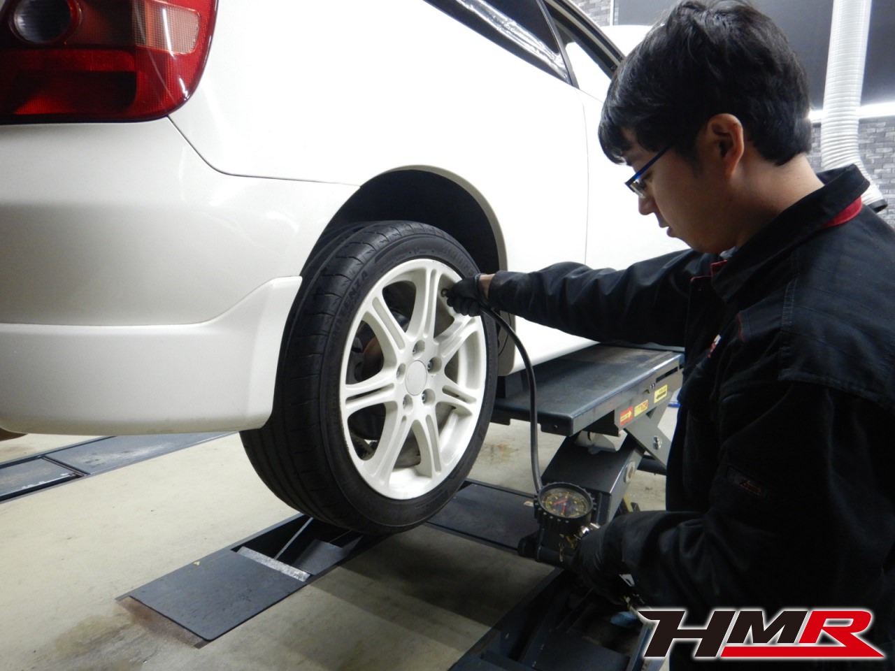 各タイヤの空気圧を調整していきます。空気圧は自然と少しずつ抜けていきますのでガソリンスタンドなどで定期的な点検を行うことをおススメします。