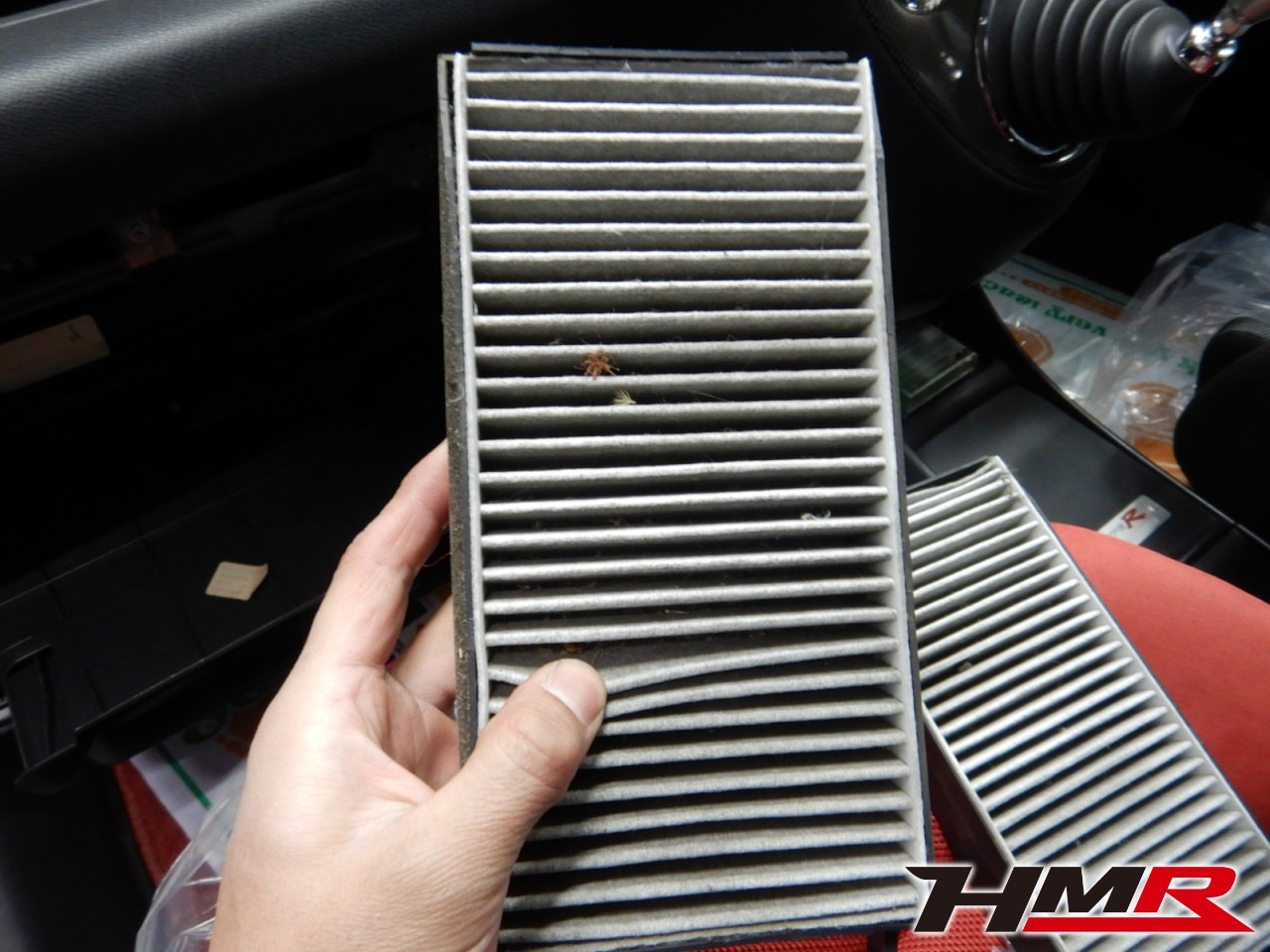 グローブボックス奥にあるエアコンフィルターも取り外したらゴミがびっしりと付着していましたので交換させていただきました。