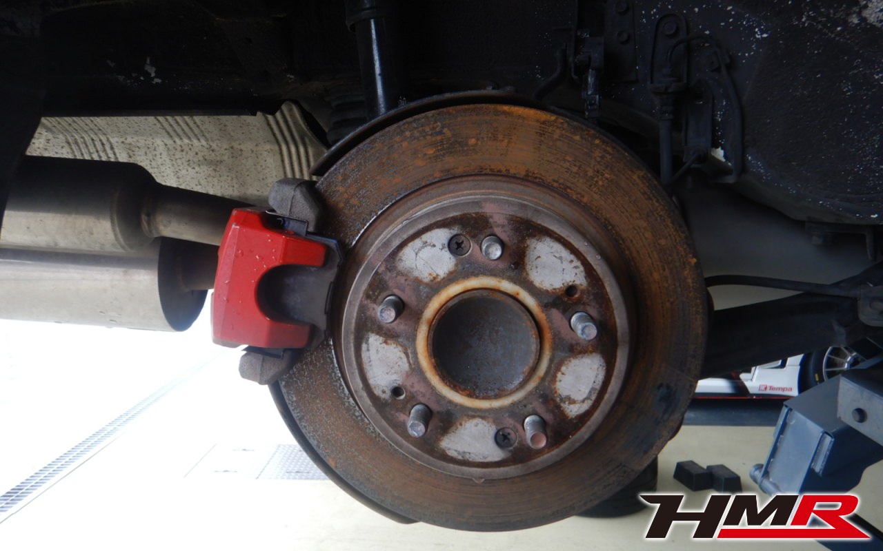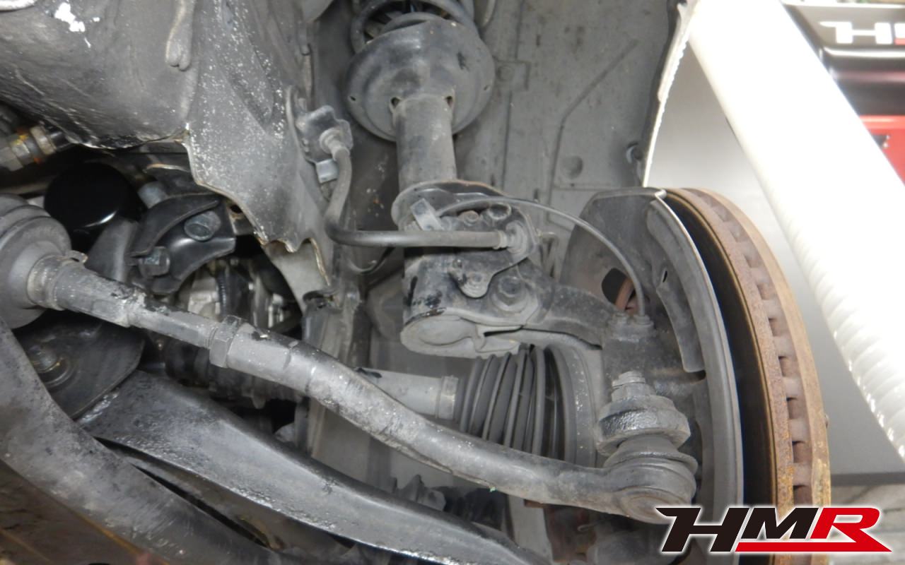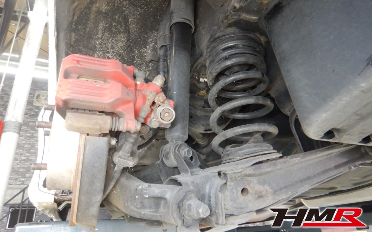 まず最初にエンジンルーム廻りをチェックしていきます。バッテリーテスターでバッテリーの健全性を点検していきます。特に問題ありませんでした。バッテリーの交換時期は使用状況によりますが3〜5年のサイクルで交換することをおススメいたします。 シガーライターソケットからの便利グッズの使用などで負荷が高くなりバッテリー上がりが多くなります。マメにエンジンを掛けて充電したり、カー用品店などで購入できる充電器を用意しておくといいでしょう。 インテークホースの点検を行いました。特に問題ありませんでした。インテークホースは経年劣化で蛇腹部分に亀裂が入ると、そこからエアフィルターを通さない空気を吸ってしまいエンジン不調に繋がる可能性があります。定期的な点検をおススメいたします。 エアフィルターの点検していきます。今すぐの交換が必要なほどではありませんが、それなりに汚れが見えますのでお早めの清掃もしくは交換をおススメさせていただきました。汚れで目詰まりを起こしてしまうとエンジン本来の性能が発揮できなくなります。定期的な点検と汚れが目立ち始めて来たらお早めの清掃・洗浄をおススメします。 次に冷却系廻りを点検していきます。ラジエター本体やホースに漏れはありませんでした。経年劣化していくと亀裂が入りそこから冷却水が漏れてしまいエンジンがオーバーヒートを起こす可能性があります。定期的な点検をおススメいたします。 次にベルト廻りを点検していきます。写真ではわからないですが、ベルト表面にヒビが見つかりましたので交換させていただきました。補機ベルトが切れてしまうとエアコンが効かなくなったり、充電が行なえず最悪走行中に停止するなどのトラブルを起こしかねません。定期的な点検を行いたいですね。 続いてプラグの点検を行いました。4本とも特に問題ありませんでした。先端の部分がひどく汚れてしまうとエンジンが掛かりづらくなったり、走行中に失火が起こり故障の原因となります。エンジンが掛かりづらくなるなどの症状が出た場合は当店にご相談ください。  リフトアップして足廻りをチェックしていきます。タイヤを縦横に揺らしてハブベアリングとボールジョイントのガタが無いかチェックを行いましたが問題ありませんでした。走行中に異音やハンドルのガタつきなどを感じた場合は当店へお早めにご相談下さい。下廻りの状態です。目立つサビや腐食も無く大きな突き上げや目立つスリキズも見受けられませんでした。 足廻りのブッシュ・ブーツ、ダンパーをチェックしていきます。ブッシュ・ブーツにヒビが入ってしまいそのままにしておくと、そこからグリスが漏れ出したり、異物が侵入して足廻りの機能に支障をきたすだけではなく、車検を通過できなくなってしまいます。 チェックしたところ、左右タイロッドエンドブーツ、フロントロアアームブーツとブッシュにヒビが見つかりました。今回はこの中で劣化が進んでいたタイロッドエンドブーツとフロントロアアームブーツを交換させていただきました。そのほかのブーツ・ブッシュについてもお早めの交換をオススメさせていただきました。  ブレーキ廻りの点検をしていきます。ブレーキキャリパーシールの状態やキャリパーピストンの動きに問題ありませんでした。 シールが劣化するとピストンに水が進入して錆びつきブレーキの引きずり症状に繋がる可能性があります。定期的な点検をおススメします。 ブレーキパッドの残量をチェックしていきます。フロント3mm・リア6mmでした。フロントパッドの残量がやや少ないので半年内での交換をおススメします。  ブレーキローターは摩耗が見られましたがまだこのまま使っていても問題ありませんでした。次のブレーキパッド交換時に同時にローターを交換するといいですね。