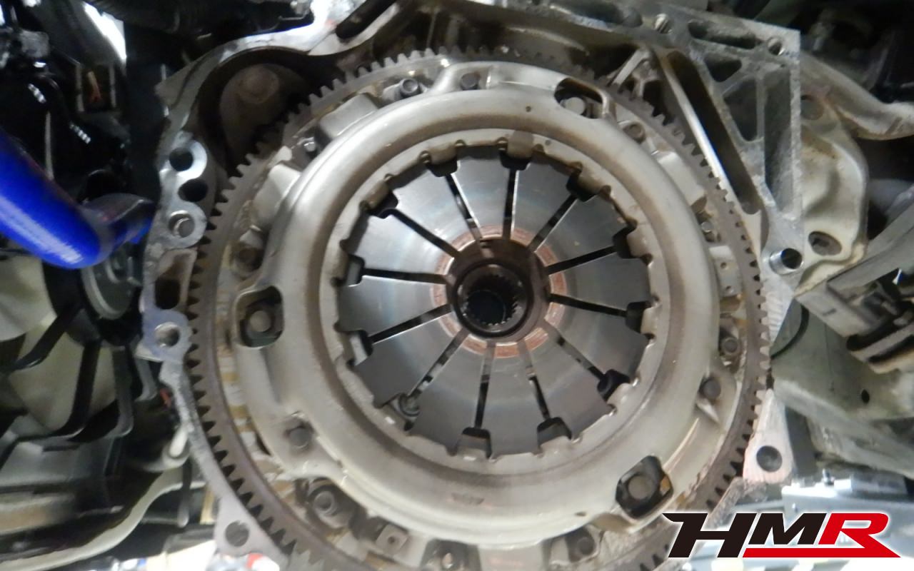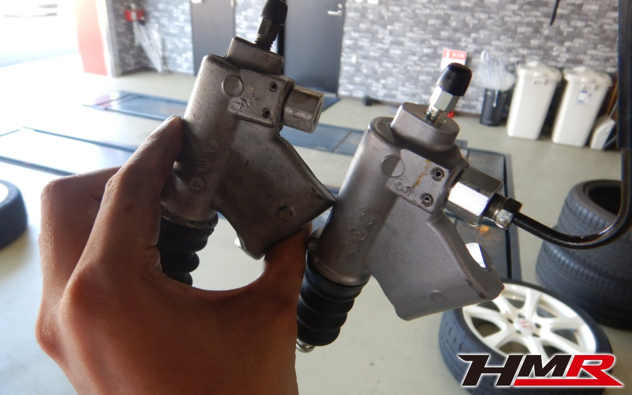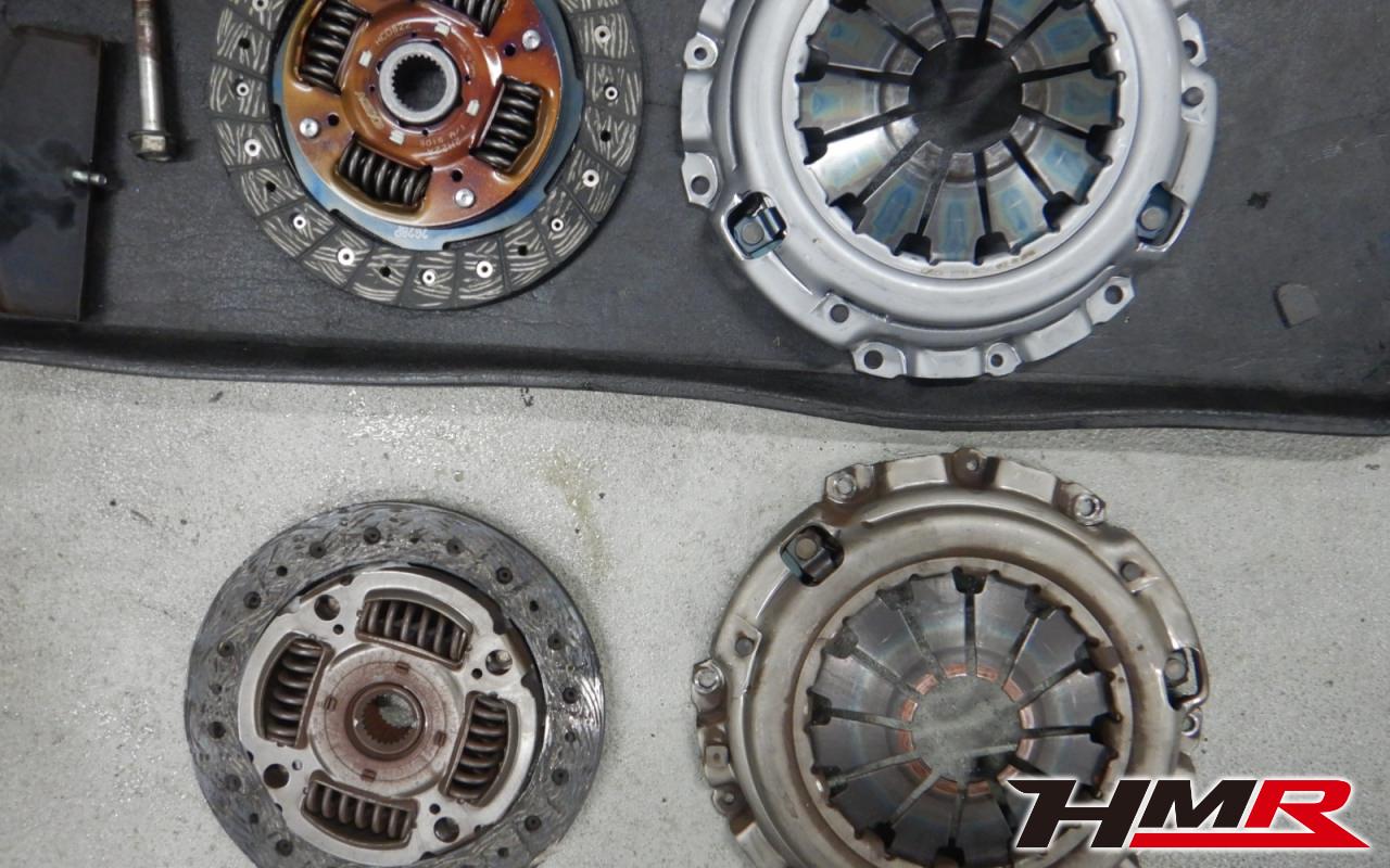 今回入庫時のチェックからバックギアが入りにくい症状が出ていました。クラッチをチェックしたところ消耗がかなり進んでいたので新品に交換させていただきました。その様子を紹介します。写真では既にミッションケースが降ろされていますが、吸気パーツ、サブフレーム、ドライブシャフトを取り外してようやくミッションケースを降ろしていきます。 写真上が新しいクラッチディスクとカバーです。 フライホイールは表面をチェックし継続して使用することになりました。フライホイールは、少しの摩耗による凹凸であれば表面を研磨して使用する場合もあります。 こちらはミッションケース側のレリーズフォークとベアリングです。 レリーズシリンダーも交換します。 クラッチ類の組付けが完了したら新しいクラッチフルードを入れてエア抜きをして完了となります。