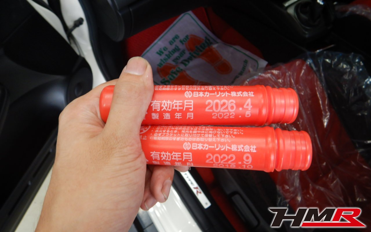 サンフレアは有効期限が切れていても車載されていれば車検は問題ありません。但しいざとなった時に使えるとは限りませんのでHMRでは有効期限が切れたものは交換させていただいております。
