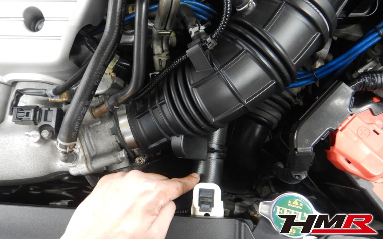 インテークホースの点検を行いました。特に問題ありませんでした。インテークホースは経年劣化で蛇腹部分に亀裂が入ると、そこからエアフィルターを通さない空気を吸ってしまいエンジン不調に繋がる可能性があります。定期的な点検をおススメいたします。