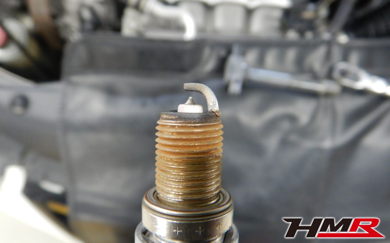 続いてプラグの点検を行いました。4本とも特に問題ありませんでした。先端の部分がひどく汚れてしまうとエンジンが掛かりづらくなったり、走行中に失火が起こり故障の原因となります。エンジンが掛かりづらくなるなどの症状が出た場合は当店にご相談ください。