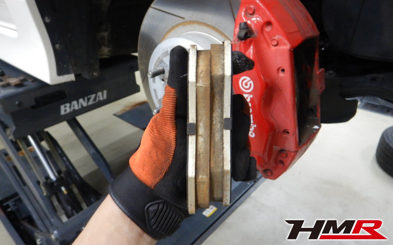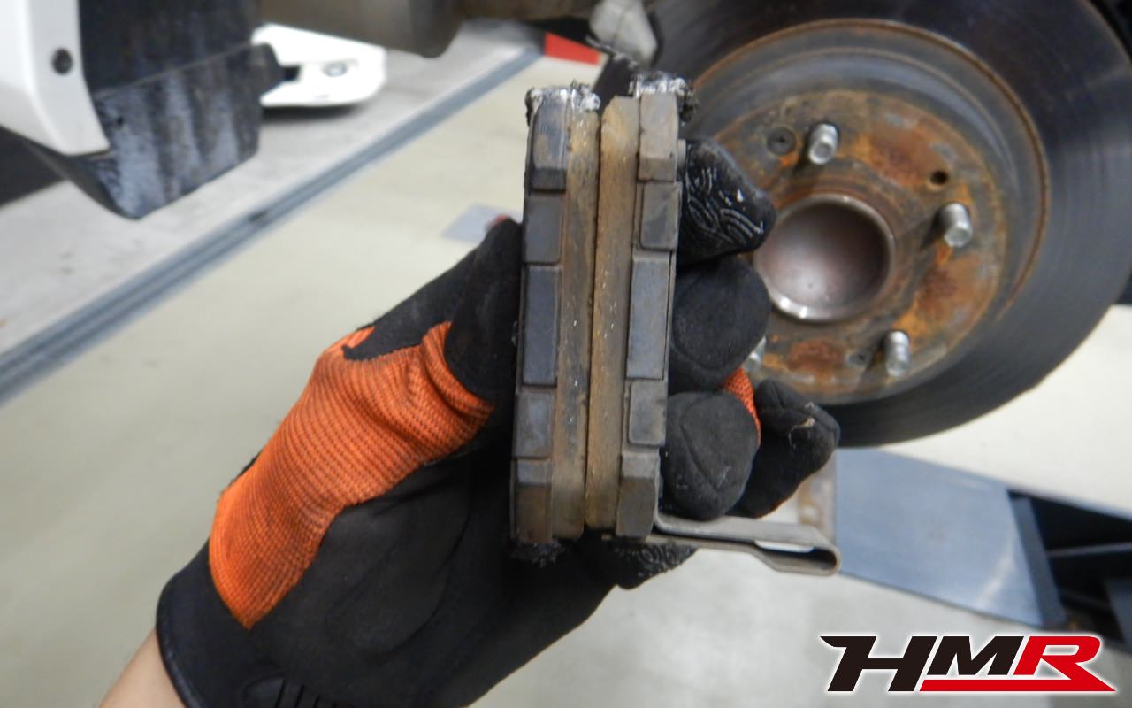 ブレーキパッドの残量をチェックしていきます。フロント9mm・リア5mmでした。