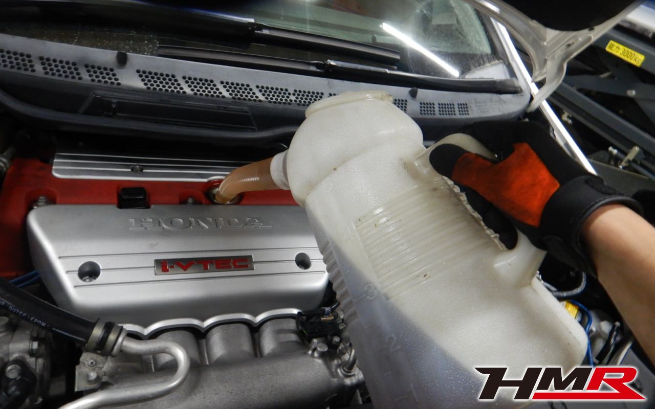 エンジンの冷却に必要不可欠なクーラント液も交換していきます。