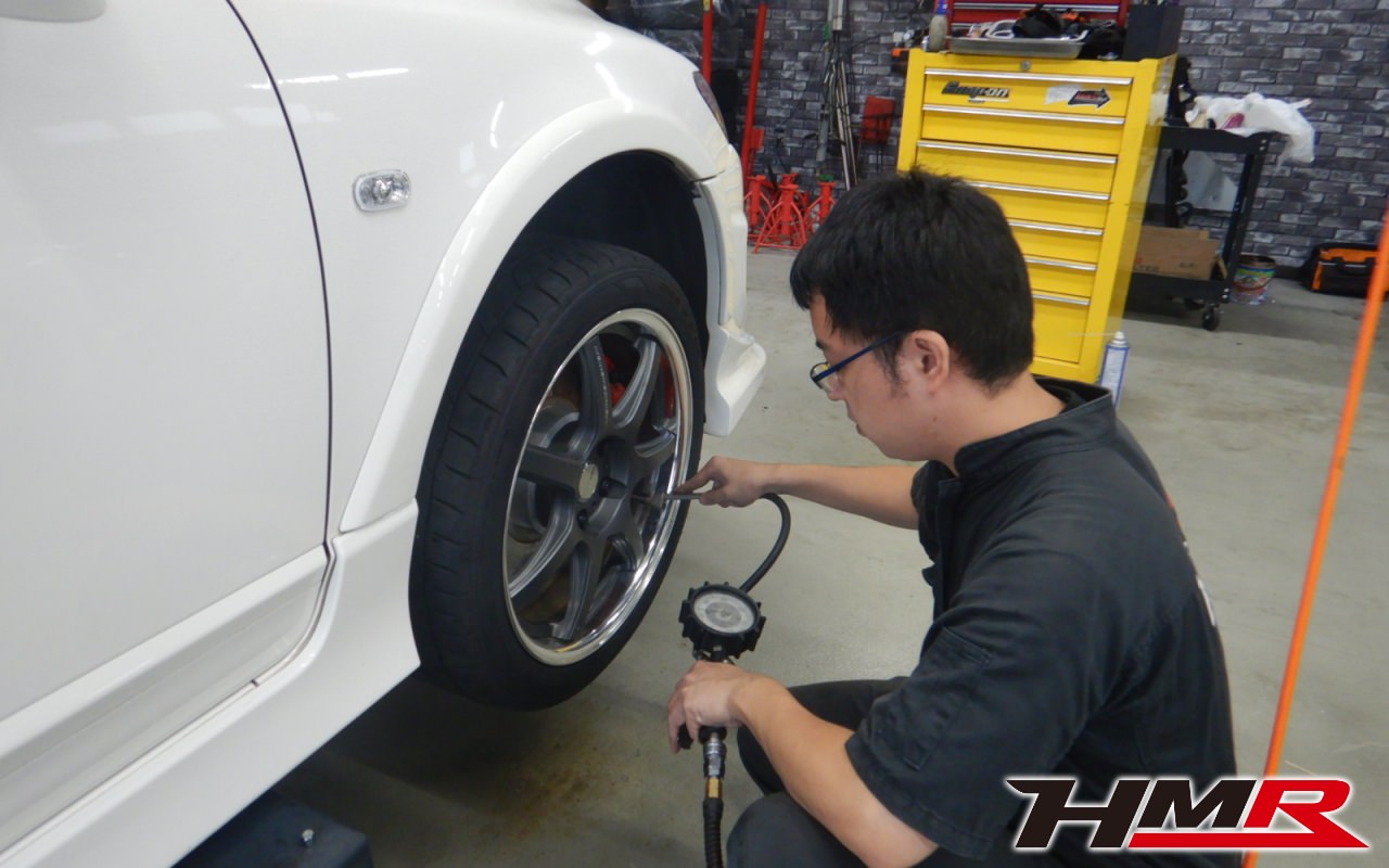 各タイヤの空気圧を調整していきます。空気圧はガソリンスタンドなどで定期的な点検を行うことをおススメします。