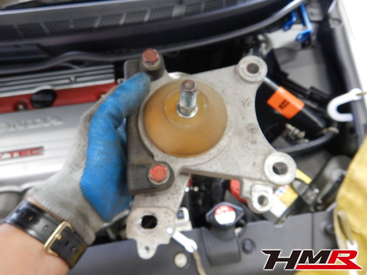 今回ご依頼したお客様のシビックタイプRは、最近購入されたもので元々強化エンジンマウントが装着されていました。そのために車内に伝わる振動が多かったのでノーマルマウントに交換していきます。