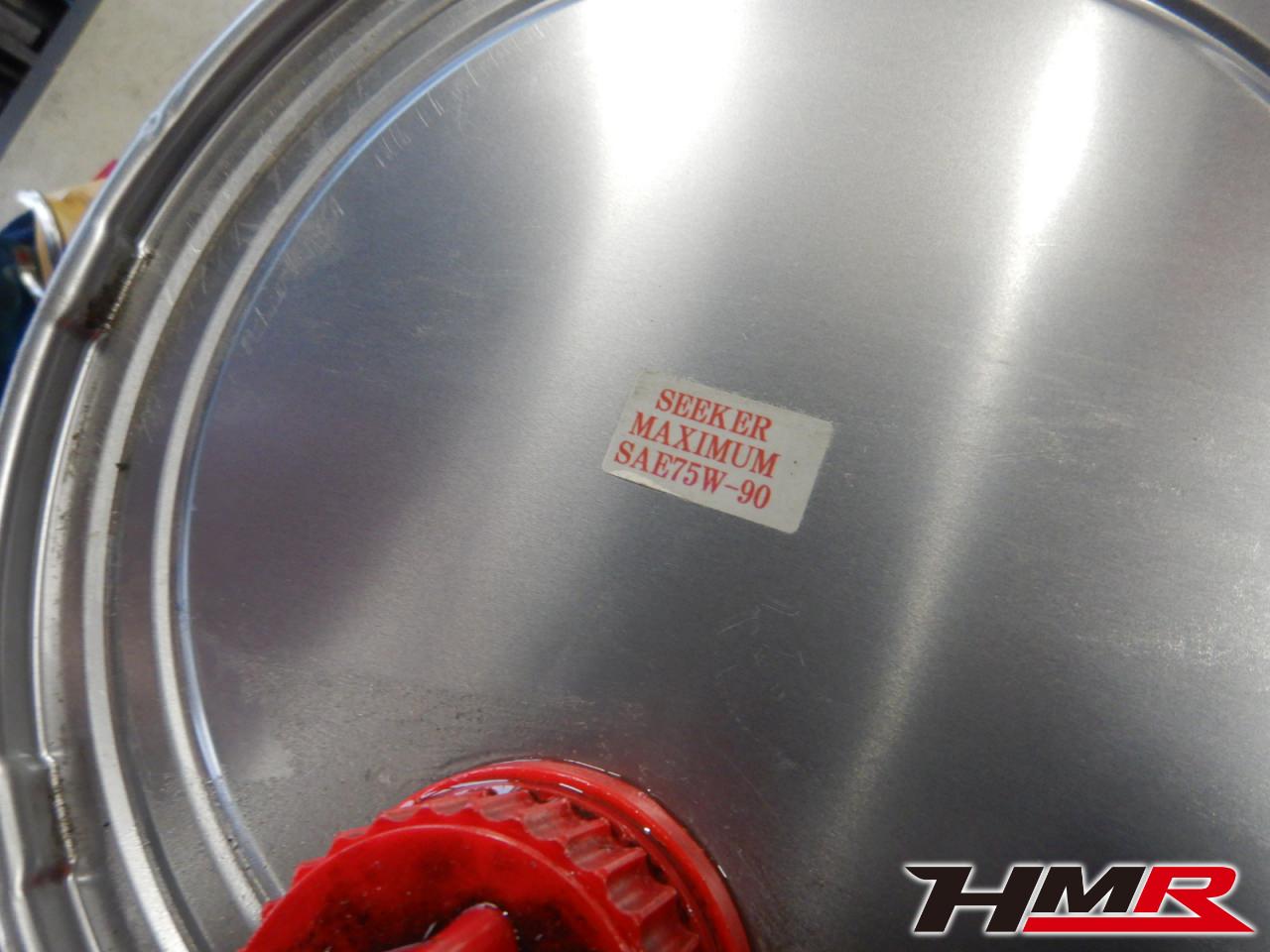 ミッションオイルは、ホンダ系のチューニングメーカーSEEKER製の「SEEKER MAXIMUM 75W-90」を入れていきます。街乗りから高負荷・高温のサーキット走行までスムーズなシフトフィールを実現するオイルとのことです。