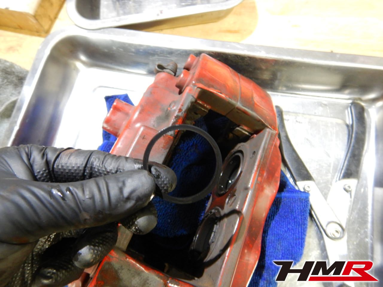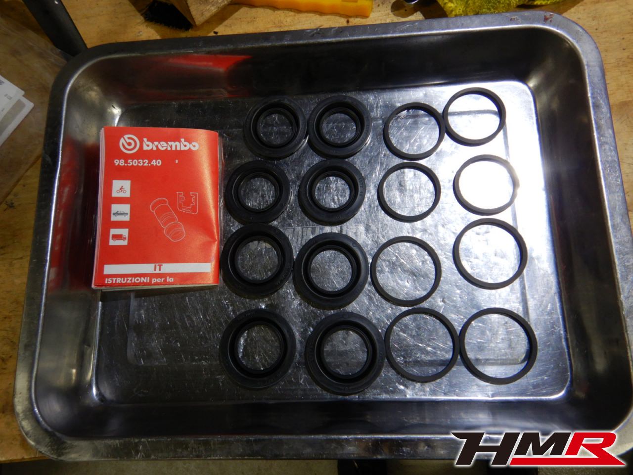ブレンボ純正のキャリパーシールキットです。これをキャリパー各部に取り付けていきます。