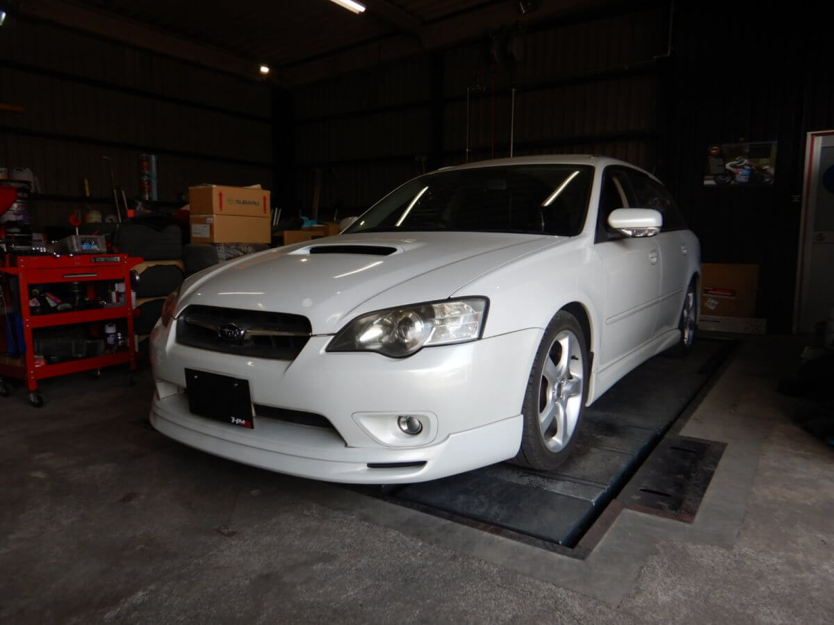 純正フルエアロのレガシィツーリングワゴン(BP5)の納車前点検整備を行いました。