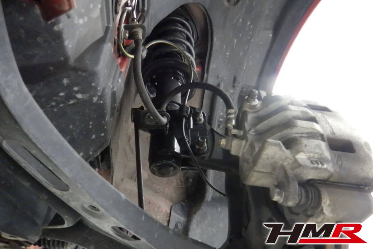 足廻りのブッシュ・ブーツをチェックしていきます。問題ありませんでしたがブッシュ・ブーツにヒビが入ってしまうとそこからグリスが漏れ出したり異物が侵入して足廻りの機能に支障をきたします。それ以外にもダンパーのオイル漏れがないかを点検していきます。