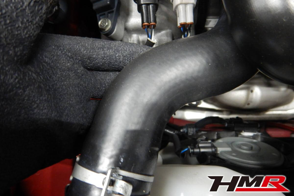 内部を冷却するクーラント液が通るラジエターホースに亀裂やクーラント漏れはありませんでした。経年劣化してくるとホースの柔軟性がなくなって亀裂などが発生してそこからクーラント漏れが発生する場合があります。定期的な点検をおススメいたします。