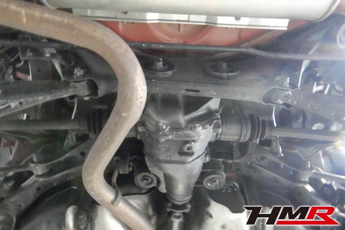 86/BRZではオイル漏れの箇所としてポピュラーなリアデフ周りは特に問題ありませんでした。ただし、デフマウントブッシュにヒビ割れがありました。今すぐの交換が必要な状態ではなかったのですが、お早めの交換をおススメさせていただきます。
