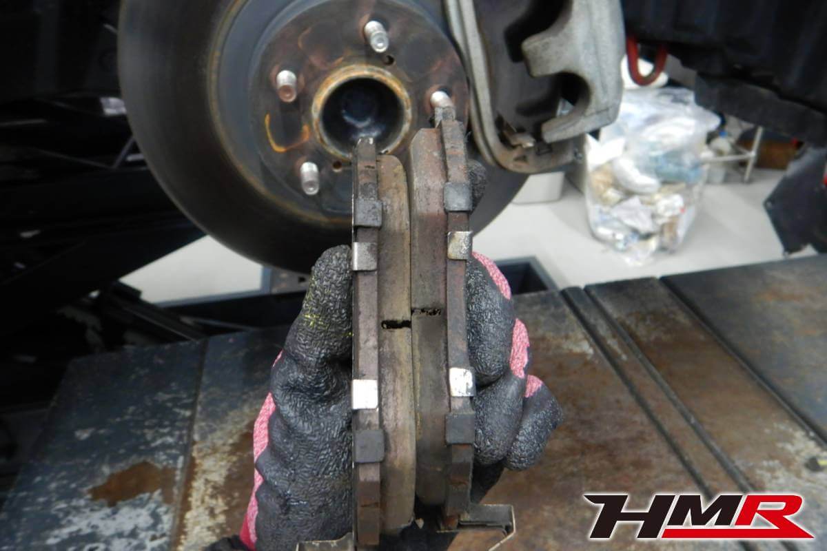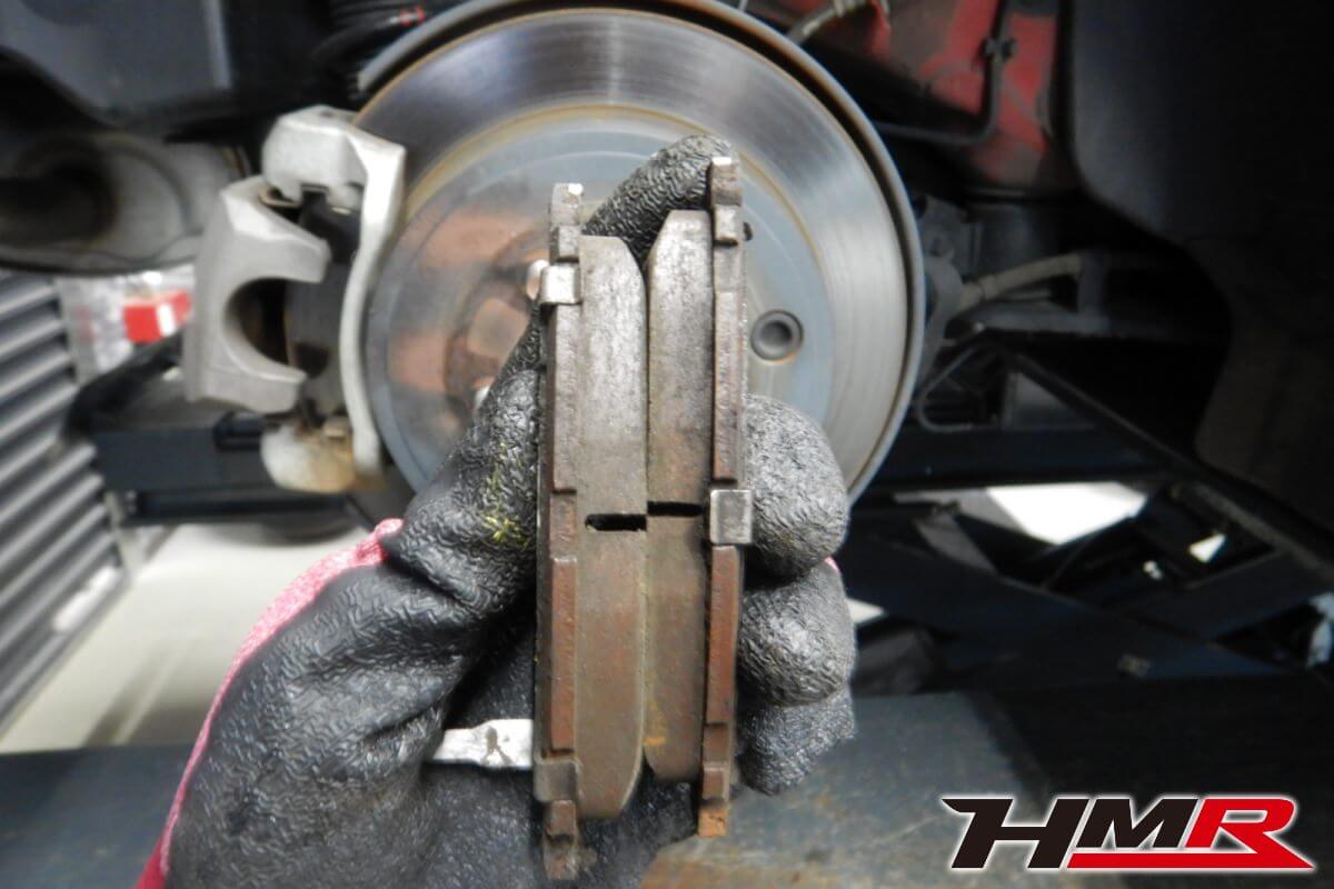 ブレーキパッドの残量をチェックしていきます。フロントリアともに9mmでした。しばらくは交換しなくても大丈夫ですね。