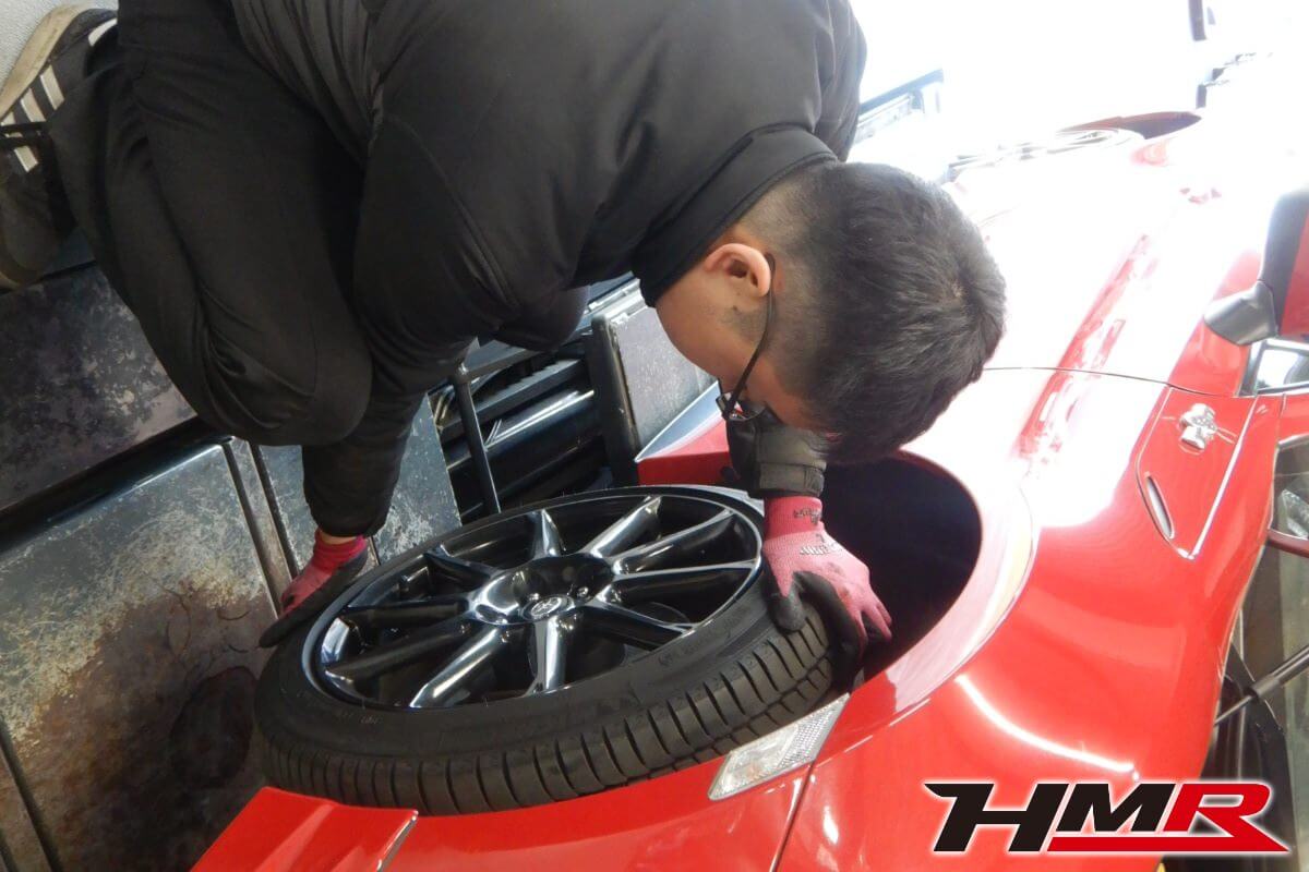 8&B HMR(エイトアンドビーエイチエムアール)の栗原です。今回はTRDエアロ 純正SDナビを装着した86(ZN6) 2.0GT ピュアレッドの納車前点検整備を行いました。担当メカニックは堀口です。