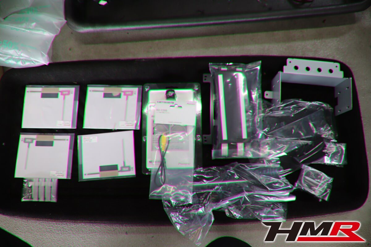 こちらはナビに付随するアンテナ類と2DINナビ取付キット。