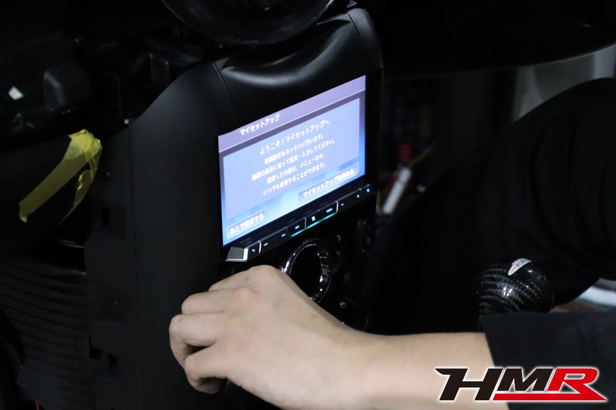 ナビが取付できたらカバーを上から被せるように取付します。ここもスペースに余裕がないのでカバーを壊さないように慎重に・・・