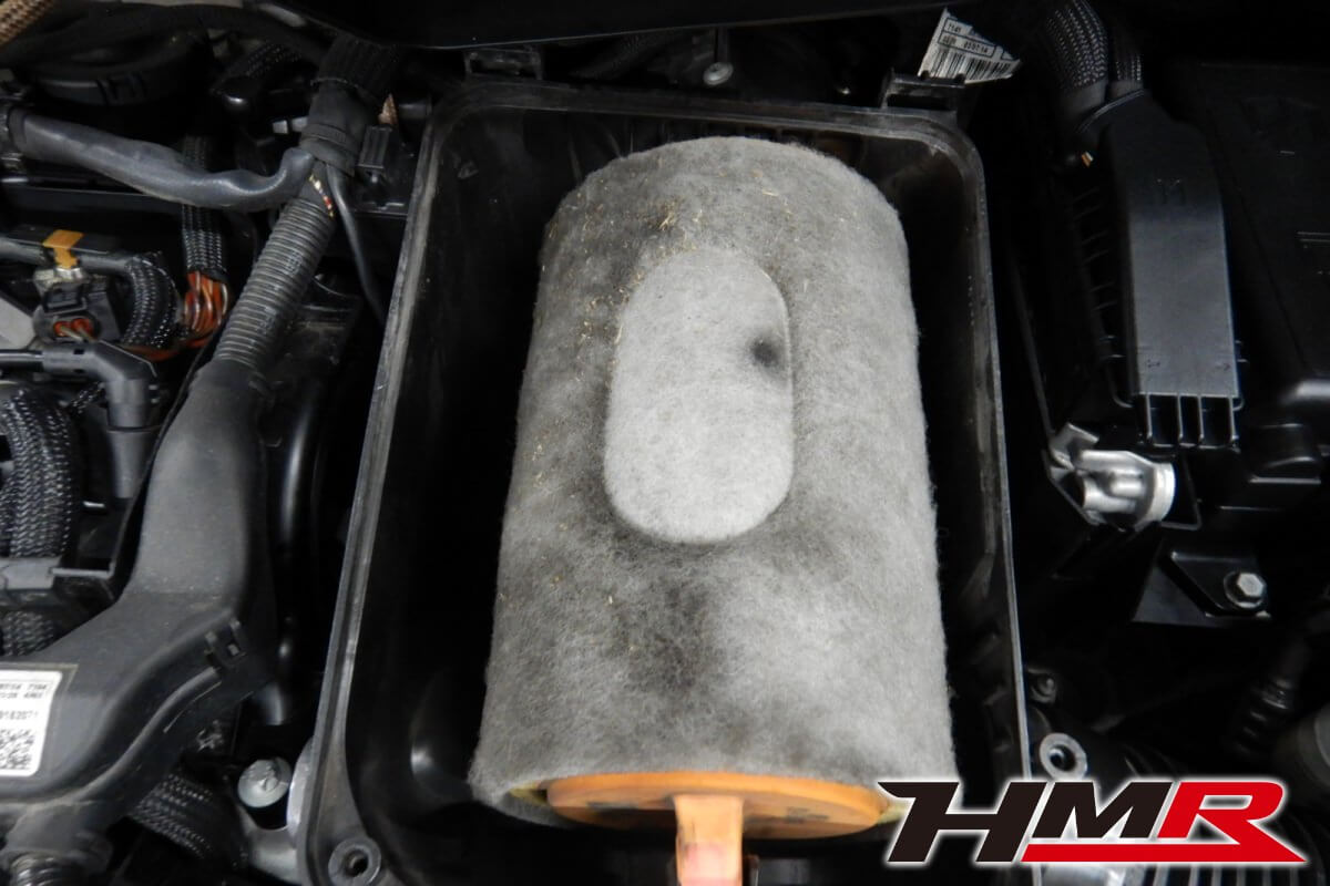 まずはエンジンルームをチェックしていきます。エアクリーナーは、表面に汚れが付着していますがまだ交換の必要はありませんでした。フィルターが汚れで目詰まりを起こすと燃費悪化やエンジン本来の性能を発揮できなくなります。定期的な点検をおススメします。