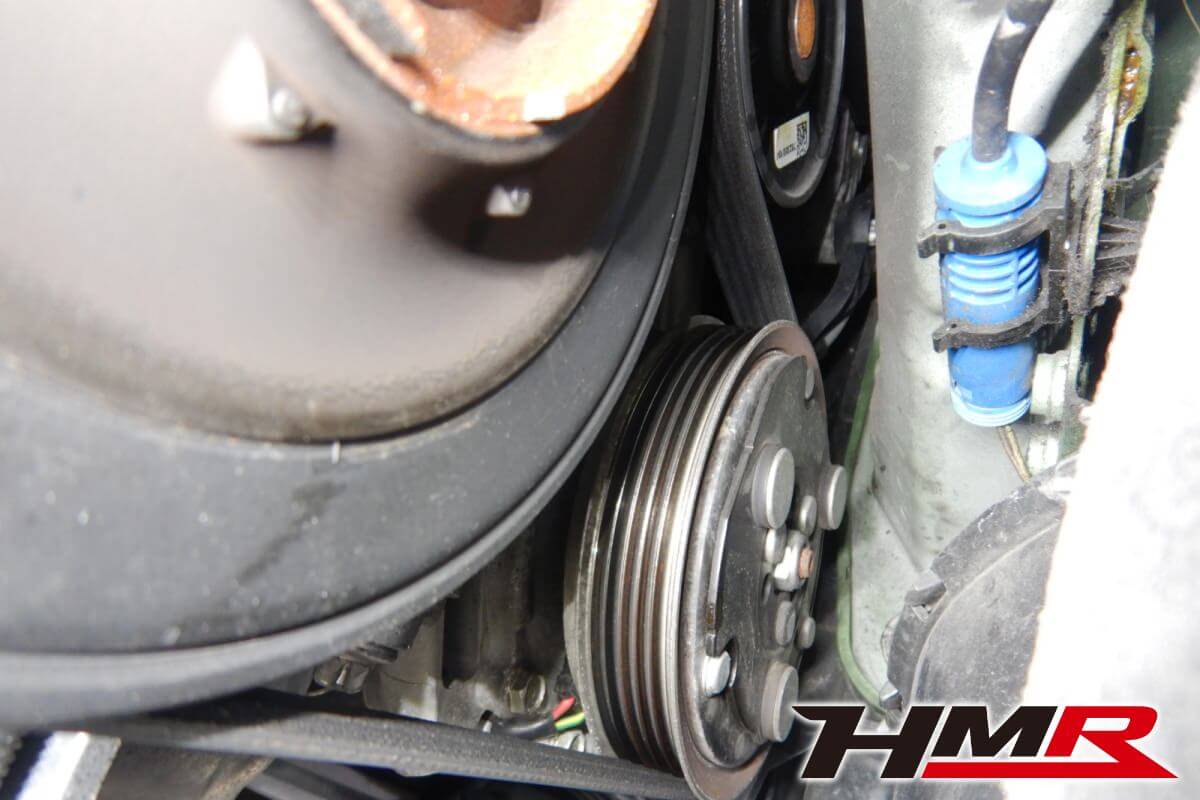 補機ベルトの状態およびオートテンショナーの異音やヒビ、ささくれ、ガタのチェックをしていきます。チェックを行いましたが問題ありませんでした。ベルトが切れてしまうとエアコンが効かなくなるだけではなく、バッテリー充電ができなくなりエンジンが停止してしまいます。定期的な点検をおススメいたします。