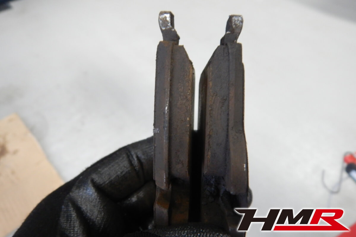 ブレーキパッドの残量をチェックしていきます。フロントリアともに7mmでした。まだまだしばらくは交換しなくても大丈夫ですね。