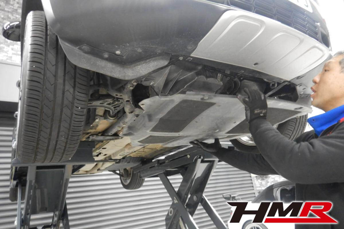 オイル交換の際に取り外したアンダーカバーを装着していきます。