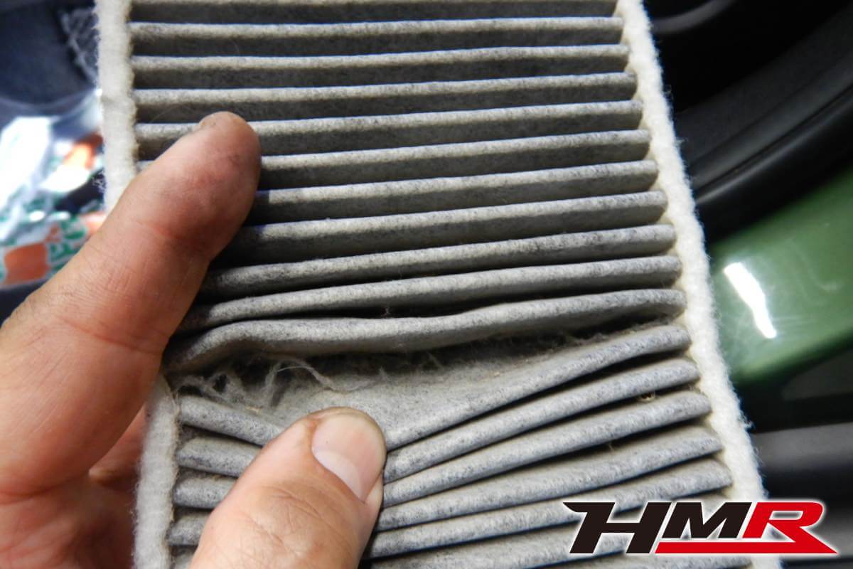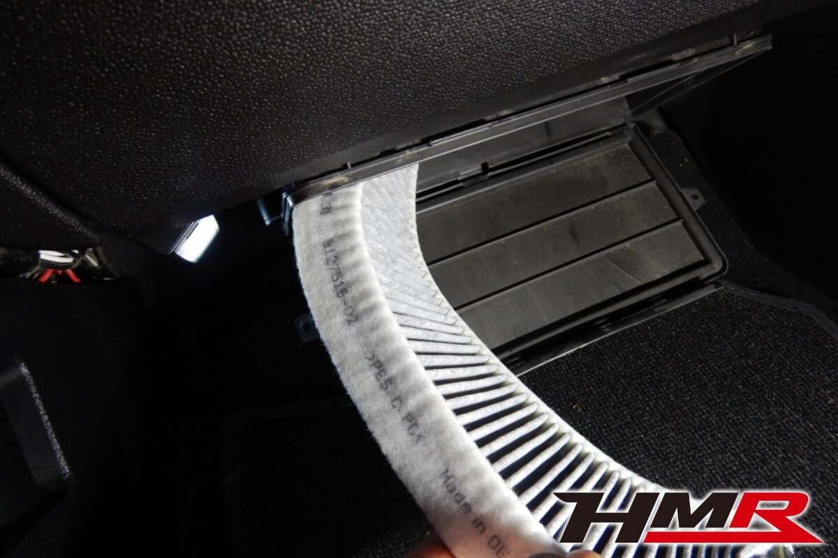 室内のエアコンフィルターを交換していきます。外気を取り込むのでゴミやチリなどを受け止めています。汚れが増えると車内の不快ない匂いの原因となったりエアコンの効きが悪くなり、燃費悪化に繋がってしまいます。定期的な点検をおススメします。