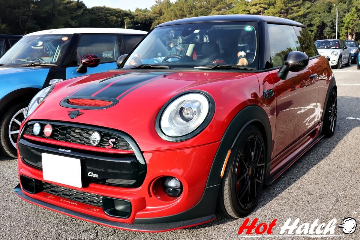 HOT Hatch HMR(ホットハッチ エイチエムアール)のヤナギです。12月12日に稲毛海浜公園駐車場で開催されている「朝いなミーティング」にデモカーのR56で参加させていただきました。朝7時から9時半までの2時間半のみ稲毛海浜公園で開催されているので朝いなというネーミングなんですね。ざっと50台くらいは参加していたのではというくらい沢山のミニオーナーが集まっていました♪